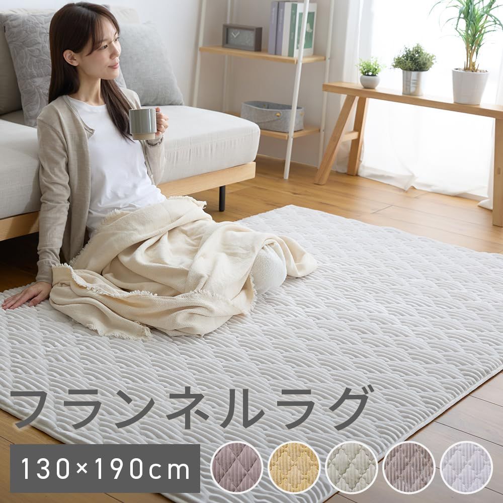 アイリスプラザ カーペット ラグマット ラグ 洗える 滑り止め 抗菌 防ダニ 長方形 フランネルラグ おしゃれ かわいい フランネルラグ(針抜き) 130×190cm アイボリー