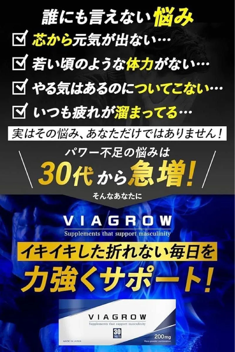 【あと一歩が欲しい方に】VIAGROWは「昔の自分を取り戻したい」「あと一歩が欲しい」などの悩みをサポートするために作られたメンズサプリメントです。厳選した8種類の成分を高配合し、元気があふれる男性に選ばれ続けているサプリメントです。