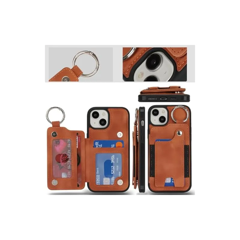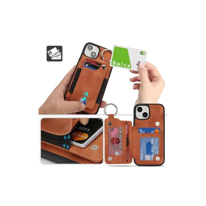 【新品】 SailorTech ケース iPhone 15 背面ケース翻盖型 指リング機能付きカード ホルダー付き女性用, アイフォン15 手帳ケース 横置き機能 スロット付き おしゃれなケース iPhone15 ケース 背面収納 6.1in-カーキ