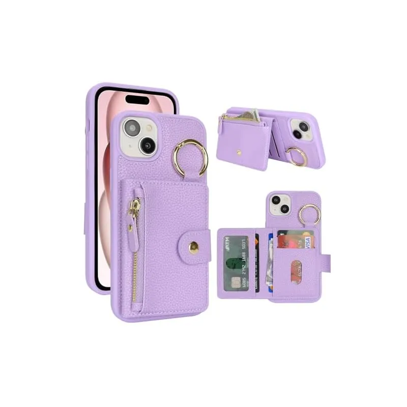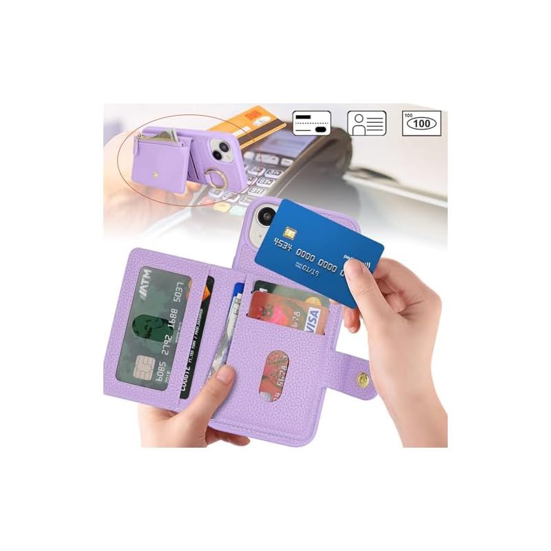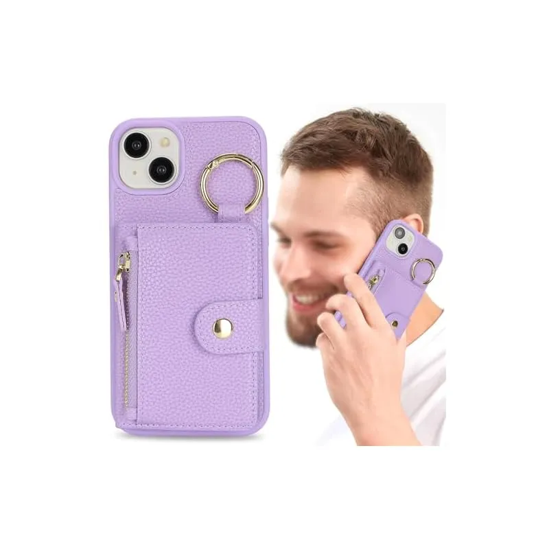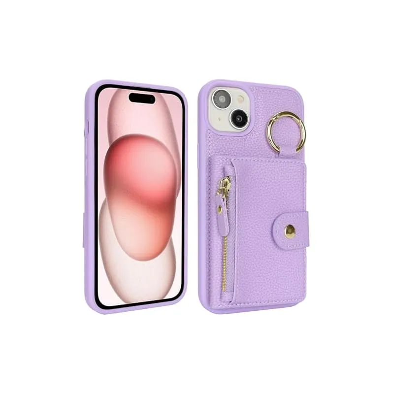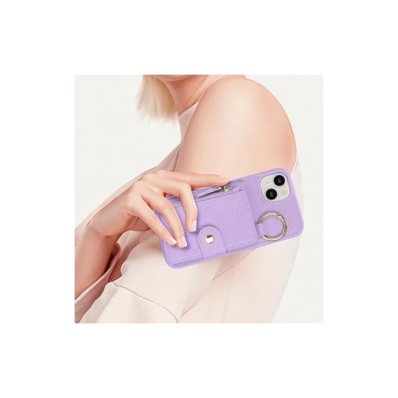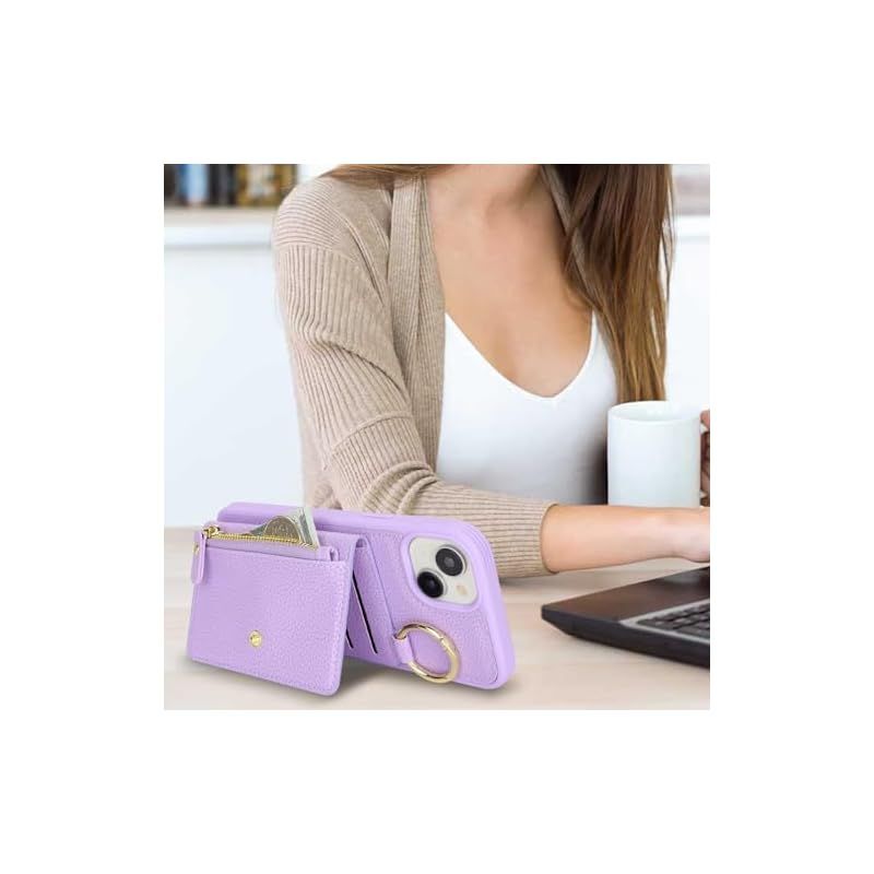 【新品】 SailorTech ケース iPhone 15 背面ケース翻盖型 キーホルダーリング付きクレジットカード入れ 女性用, アイフォン15 手帳ケースライチ紋様 横置き機能 背面収納ケース iPhone15 ケース 財布型 6.1in-パープル