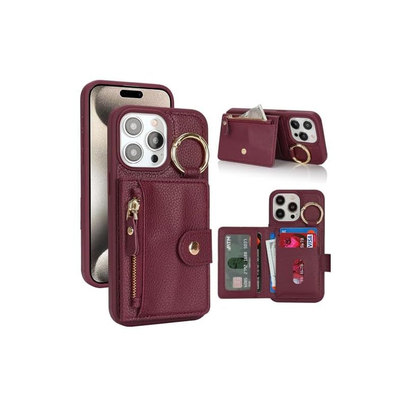 【新品】 SailorTech ケース iPhone 15 Pro Max 背面ケース翻盖型 キーホルダーリング付きクレジットカード入れ 女性用, アイフォン15 Pro Max 手帳ケースライチ紋様 横置き機能 背面収納ケース iPhone15 ProMax 製造元:SAILOR 商品番号:7 商品内容:iPhone 15 Pro Max 色:lzwllyk-ワインレッド