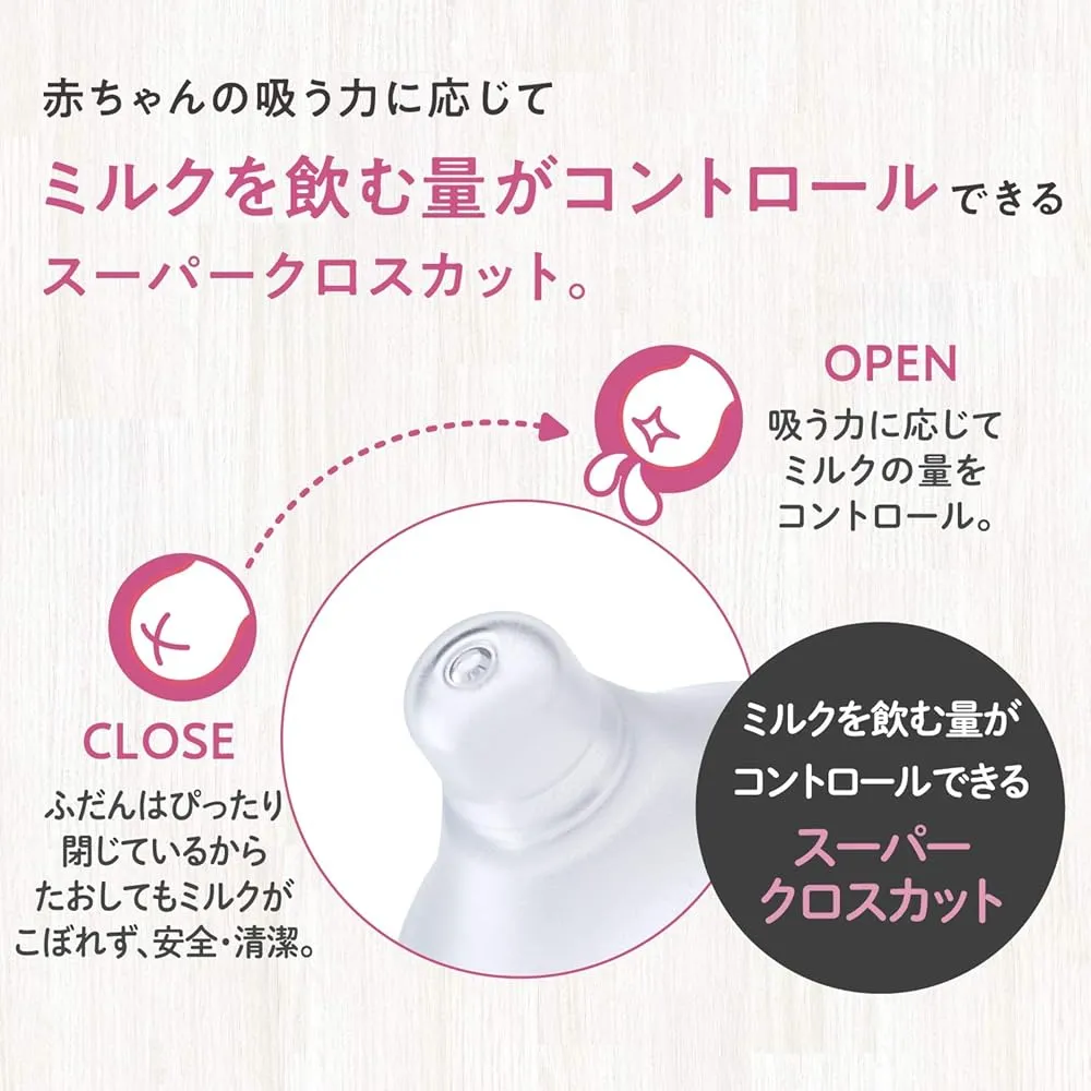 ●赤ちゃんの吸う力に応じてミルクを飲む量がコントロールできるスーパークロスカット。