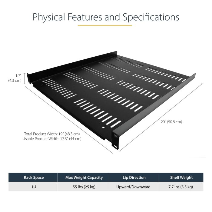 【新品・3営業日で発送】STARTECH.COM サーバーラック棚板/1U/19インチ/放熱スリット付き/奥行50.8cm(SHELF-1U-20-FIXED-V)