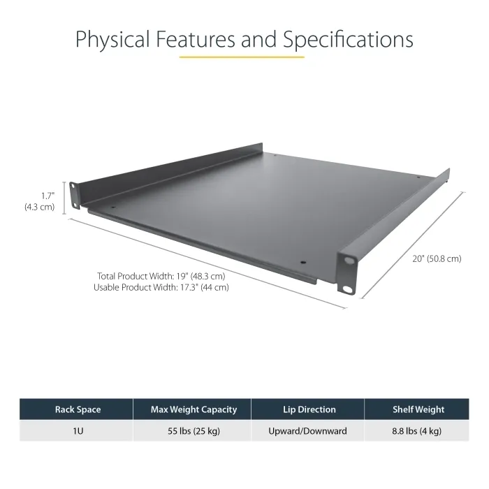 【新品・3営業日で発送】STARTECH.COM サーバーラック棚板/1U/19インチ/奥行50.8cm/耐荷重25kg(SHELF-1U-20-FIXED-S)