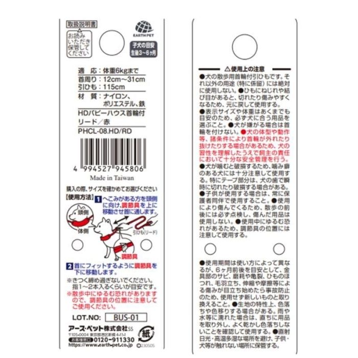 【新品・3営業日で発送】 アース・ペット ターキー ハンドラー パピーハウス首輪付リード 赤 (-)