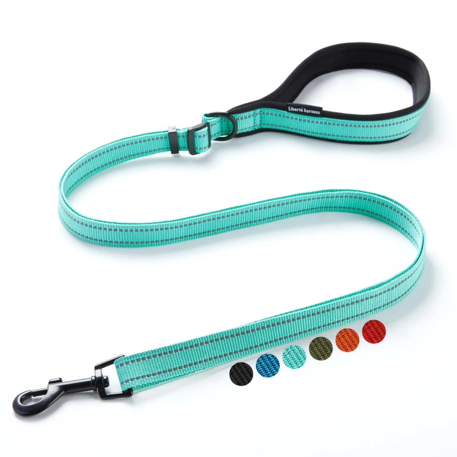 犬用リード 1本で110?180cmまで長さ調節 小型 中型 大型犬対応 40kgまで 2cm幅 反射材採用 クッション付きハンドル 小物取り付け可能 (ターコイズ)