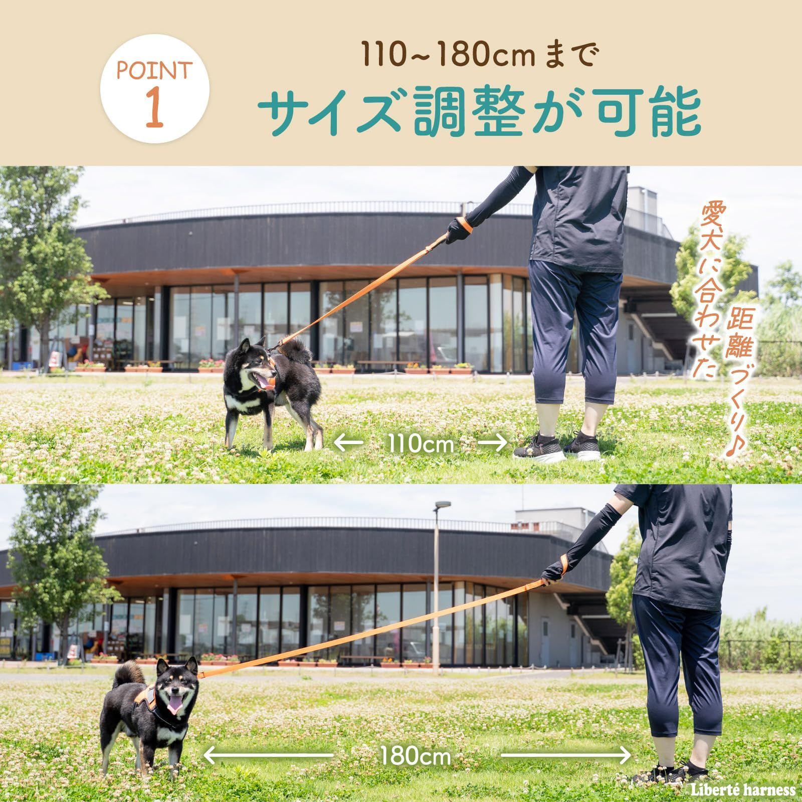 【1本で110?180cmまで自由に調節】伸ばして縮めて、愛犬との安全で心地良い距離感をキープ。使うシーンや愛犬の性格に合わせてリードの長さを簡単に調節できます。