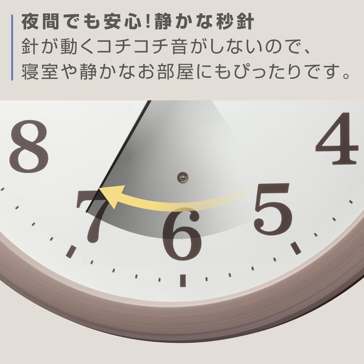 【おやすみを邪魔しない、静かな秒針】スーッと滑らかに動く連続秒針を採用。針が動くコチコチ音がしないので、寝室や静かなお部屋にもぴったりです。スムーズに動く秒針が、静かな眠りや集中時間をお手伝いします。