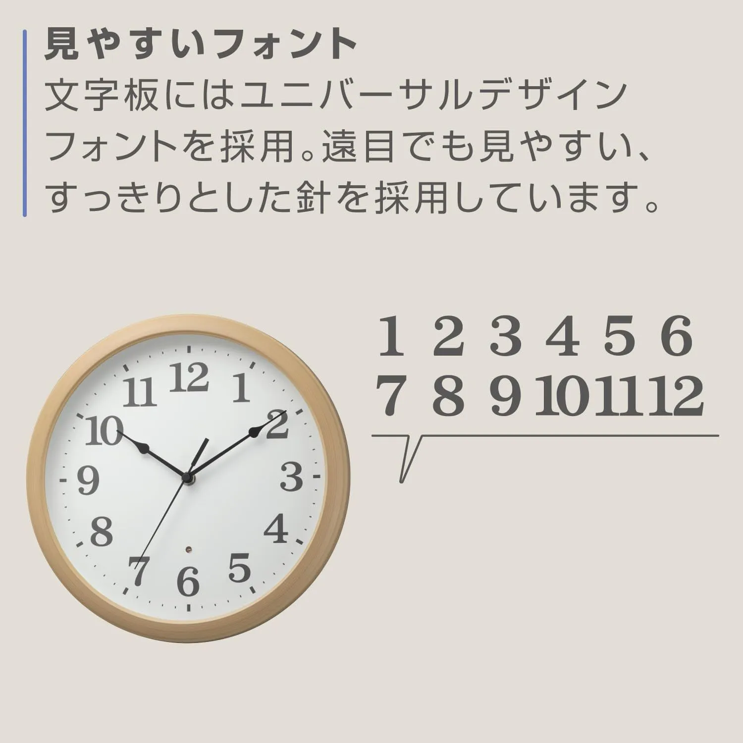 【お部屋になじむグレイッシュカラー】落ち着きのあるグレイッシュカラーで、どのようなインテリアにも合うニュートラルなデザインの時計です。少しふくらんだような外枠形状の優しい雰囲気を活かすように、枠には木目風塗装を施しました。見やすい文字板とシンプルで飽きのこないフォルム、30cmの丁度よいサイズ感は現代のインテリア空間にしっくりと溶け込みます。 さまざまなインテリアになじむグレイッシュカラーの掛け時計です。 見やすい文字板とシンプルで飽きのこないフォルム、30cmの丁度よいサイズ感は現代のインテリア空間にしっくりと溶け込みます。 暗いお部屋でも見やすいよう、夜間自動点灯機能を搭載。さらに使いやすさに配慮し、静かな連続秒針・見やすいUDフォントを使用しています。 最後までご確認頂き誠にありがとうございました。 上記をご確認頂き、ご購入いただけましたら幸いです。 何かご不明な点がございましたらお気軽にメッセージからお問い合わせ下さい。