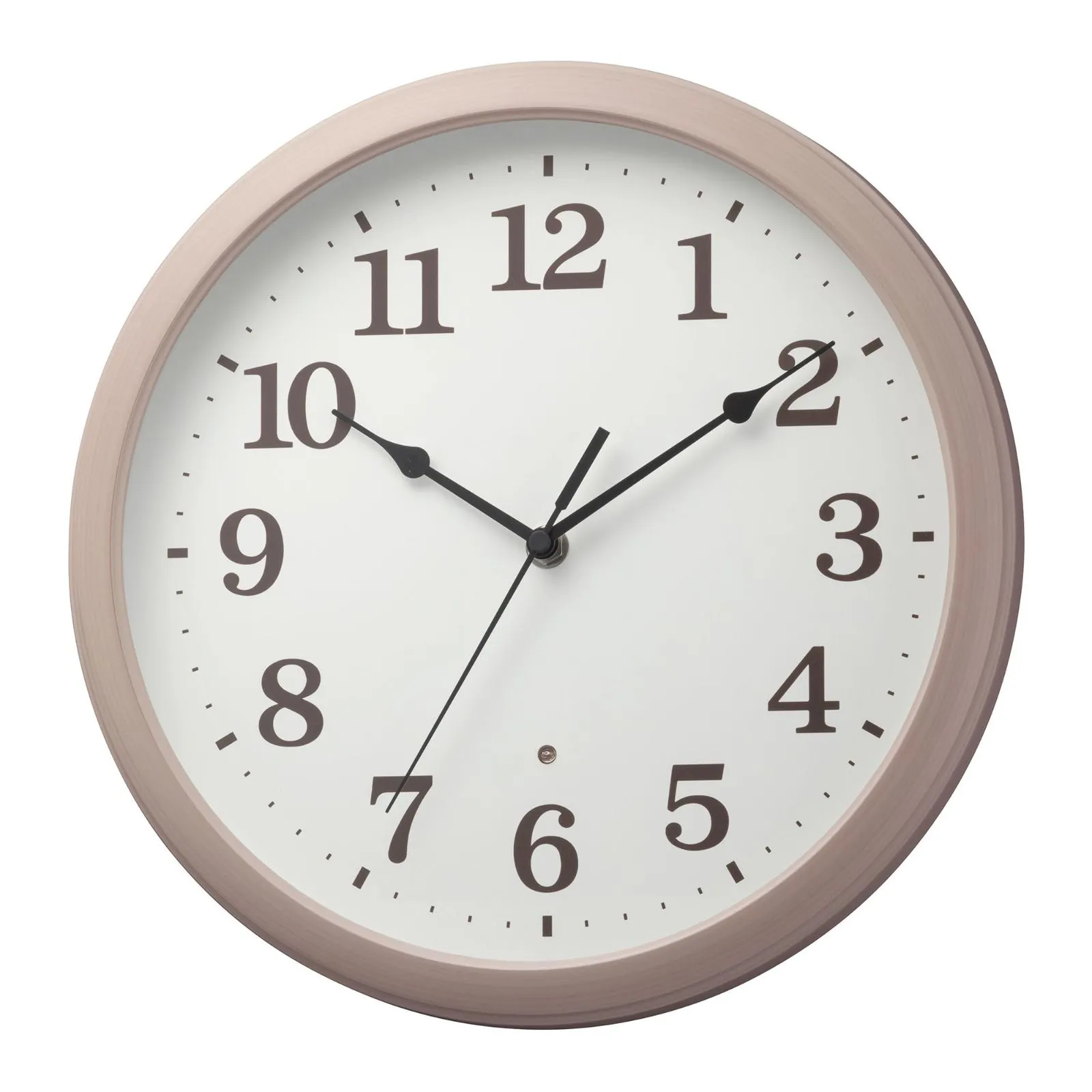 【新着商品】掛け時計 アナログ クオーツ時計 静音 連続秒針 リズム(RHYTHM) 暗所 ライト 自動点灯 見やすい フォント 木目調 おしゃれ なグレイッシュカラー ピンク Φ30x5.1cm 8MGA41ND13