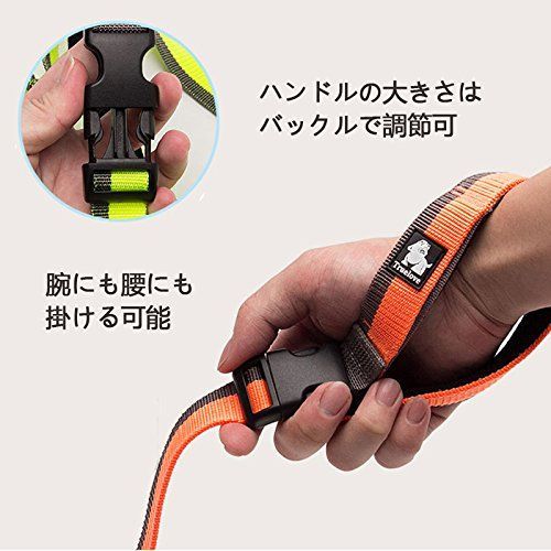 【ハンドル調節可】ハンドルの大きさはバックルで調節可、手で引いても腰に掛けても良くてハンズフリータイプです。リードを腰に掛けて愛犬と一緒に走ったり、両手を離して散歩を楽しみたい時に便利です。お電話を掛ける時に荷物が多い時にも活躍です。