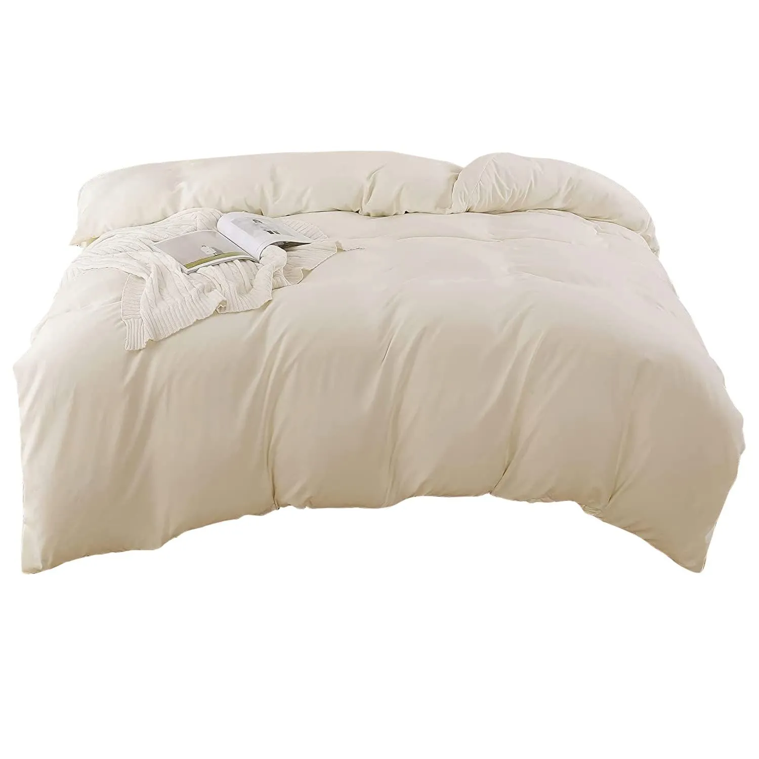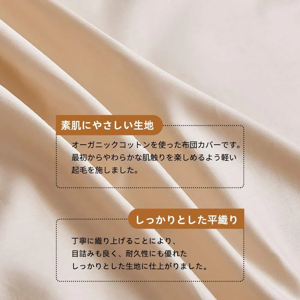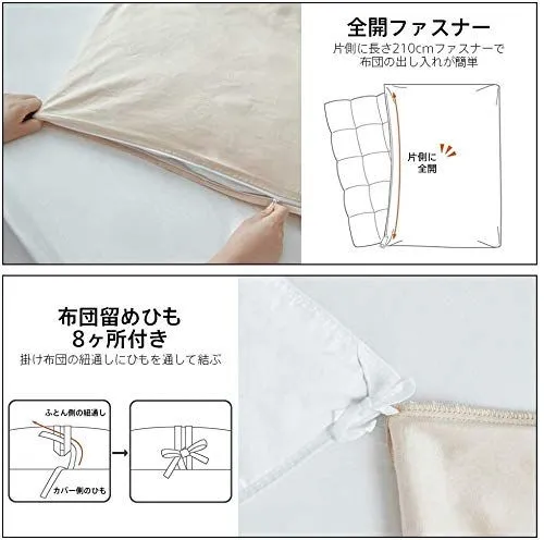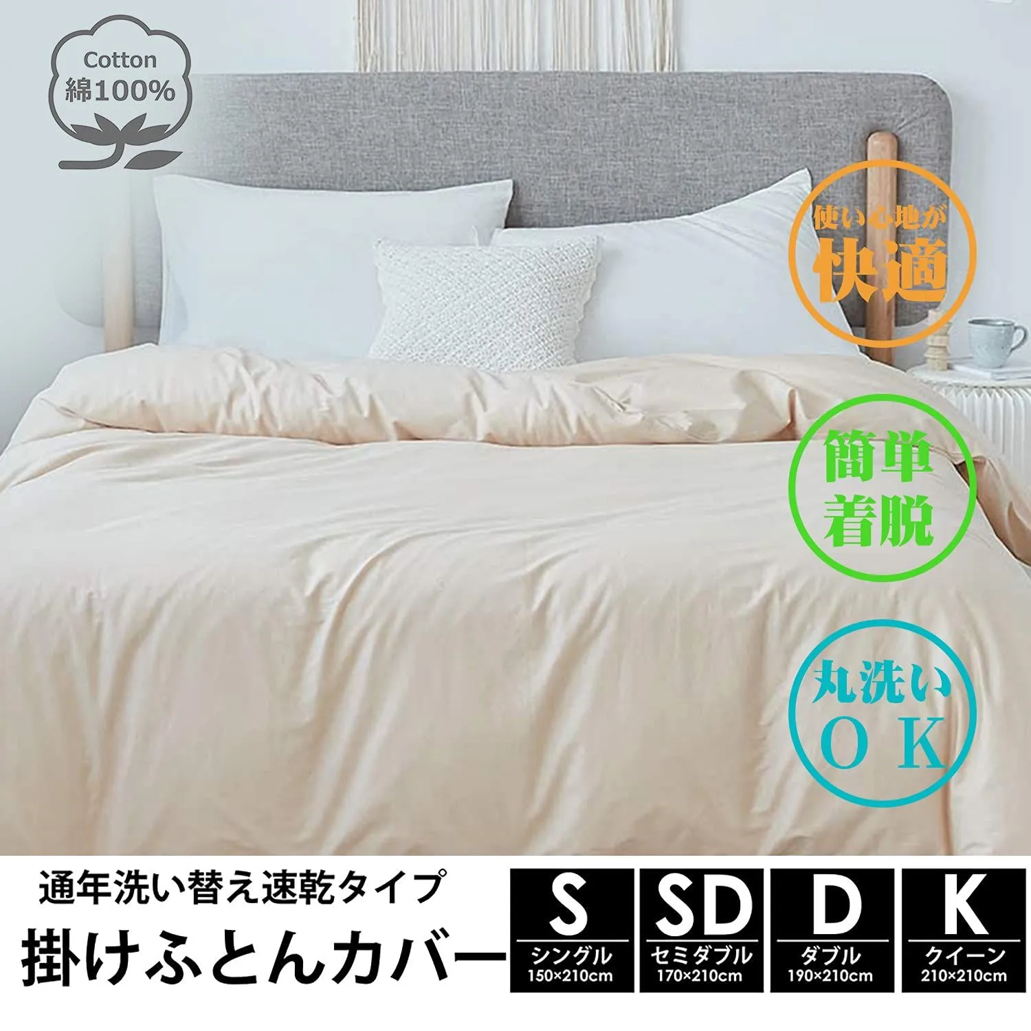 掛け布団カバー 布団カバー 綿100% ふとんカバー 掛けカバー 洗える 抗菌防臭 防ダニ オールシーズン ピーチスキン加工 全開ファスナー 通気 速乾 単品 (通年タイプ・アイボリー シングル・150X210cm)
