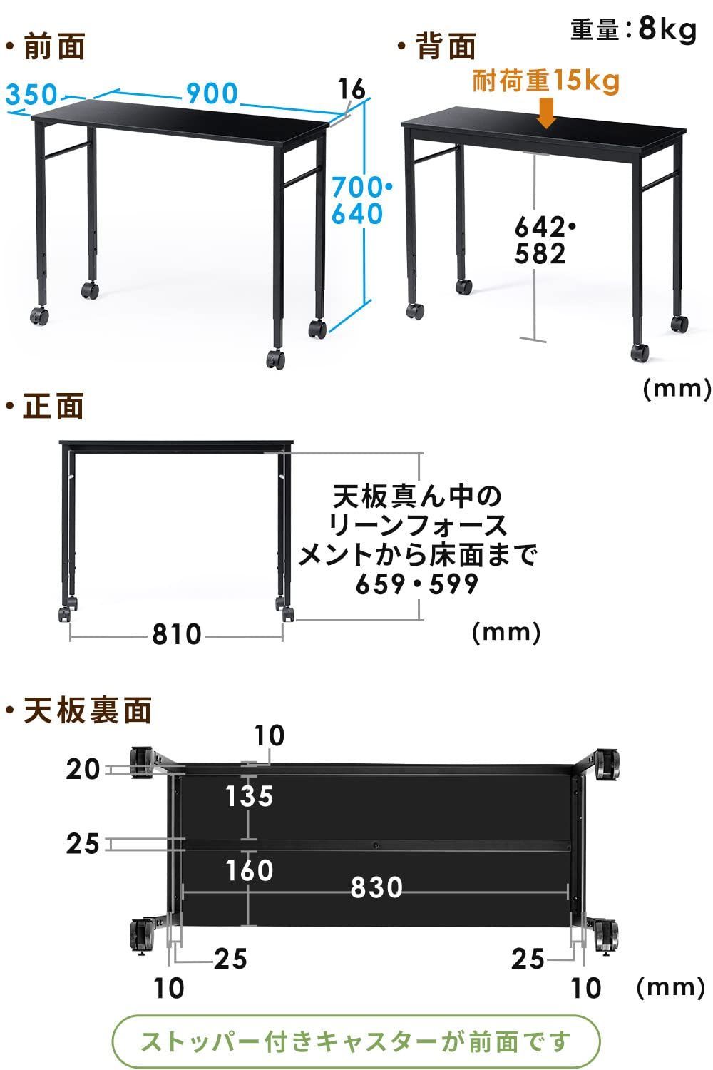 横幅90cm × 奥行35cm の キャスター付きデスク です。