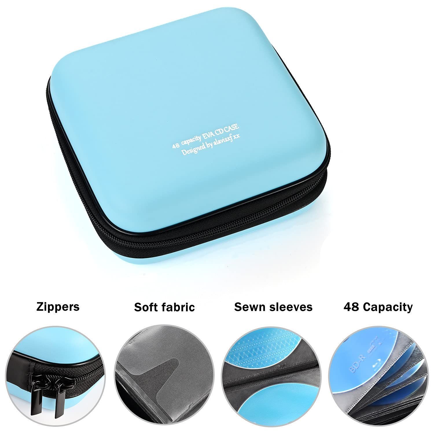 48枚収納 CDケースポータブルEVA blu-ray ディスク収納ケース 大容量 DVD/VCD 収納 (48枚 スカイブルー 48)