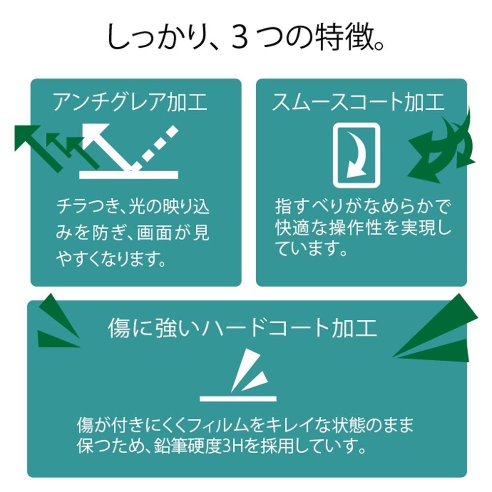 ■鉛筆硬度3Hのハードコート加工により、フィルム表面の傷を防止します。 ※硬度は実力値です。
