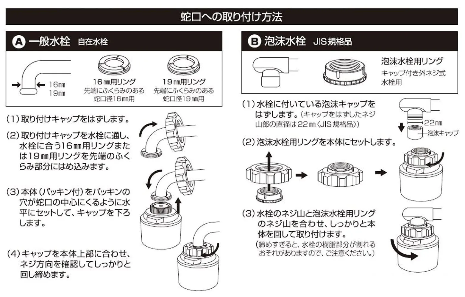 使用開始時には黒い水が出ますが活性炭の微粉末のため約5秒間通水してからご使用ください