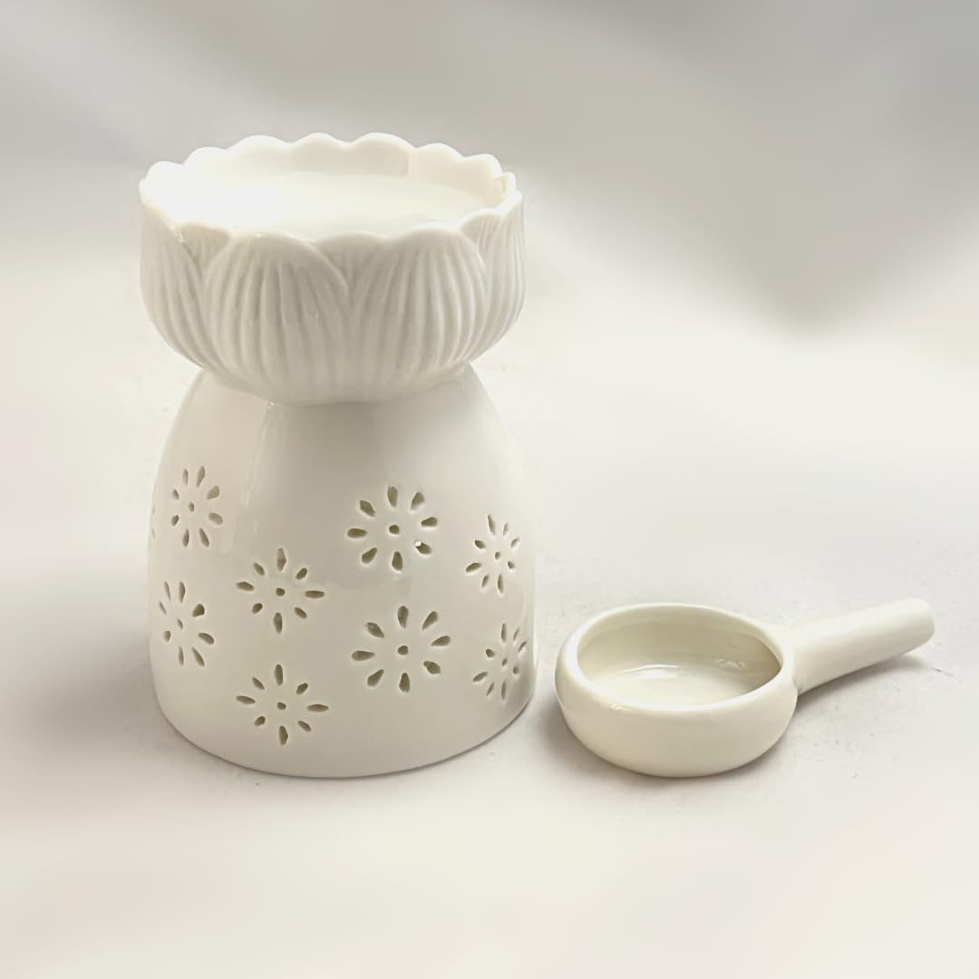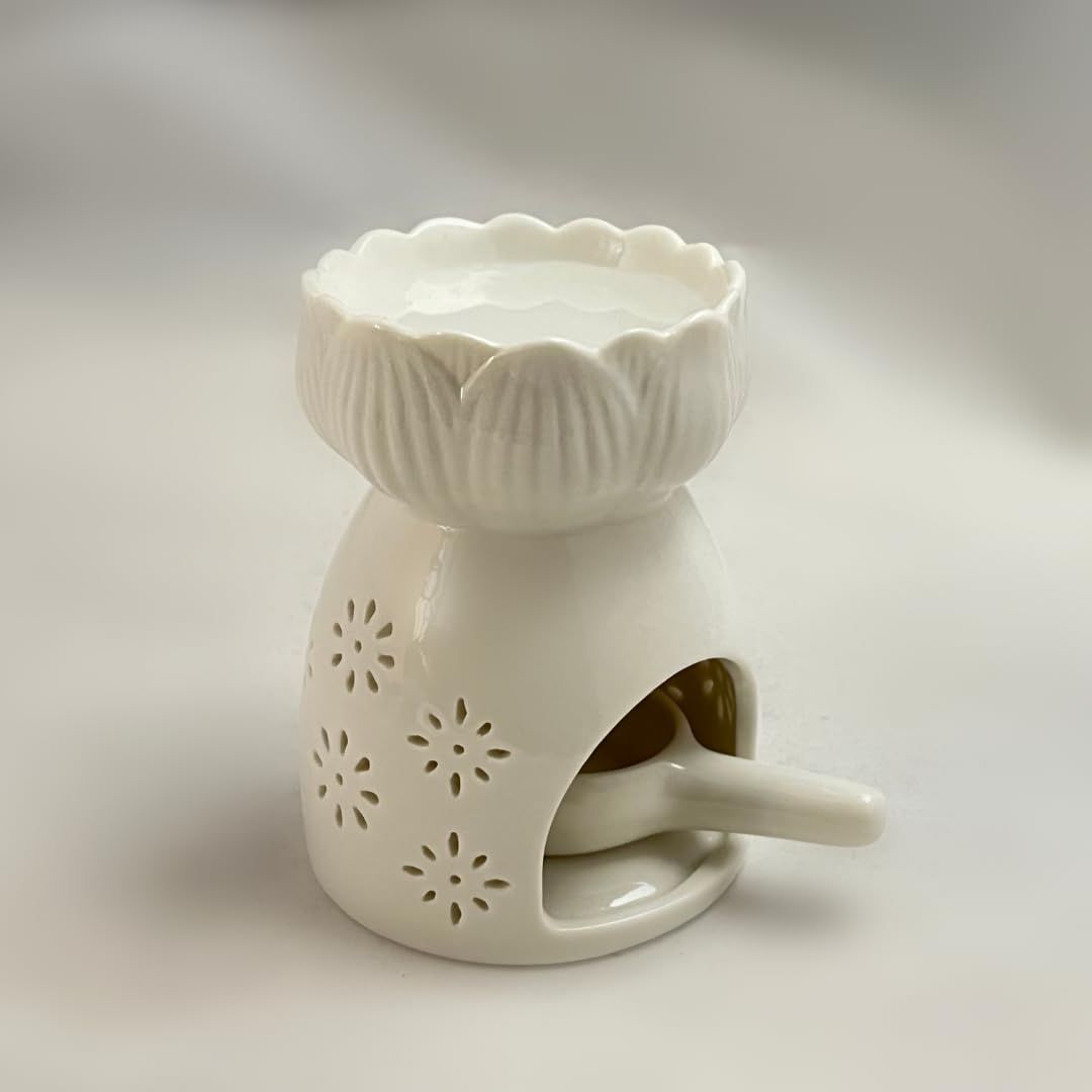 [Capitana] 陶器製 アロマポット キャンドルホルダー付きセット 白 (高さ10.5cm) 正規品 キャンドル式 (Flower3)
