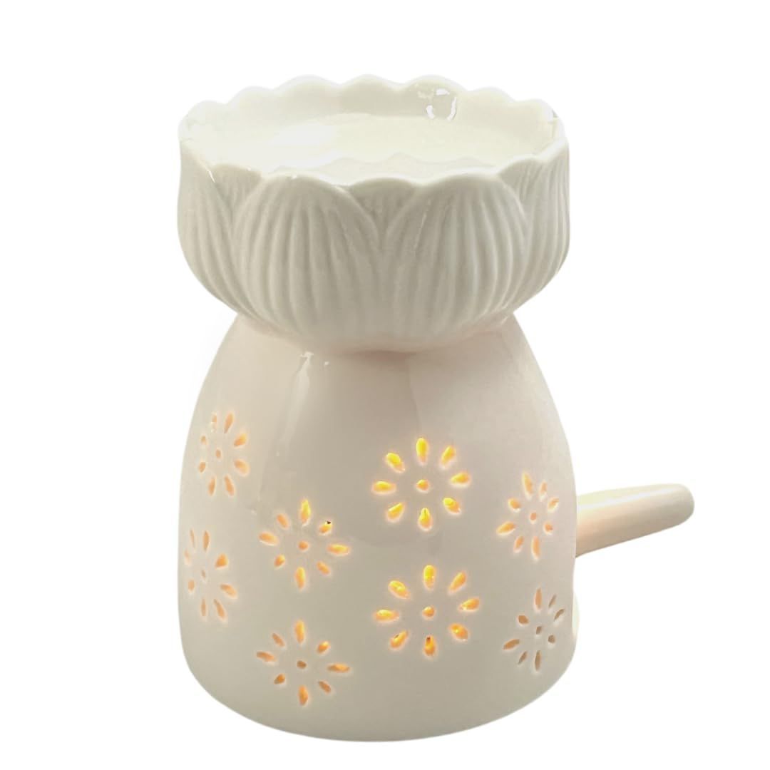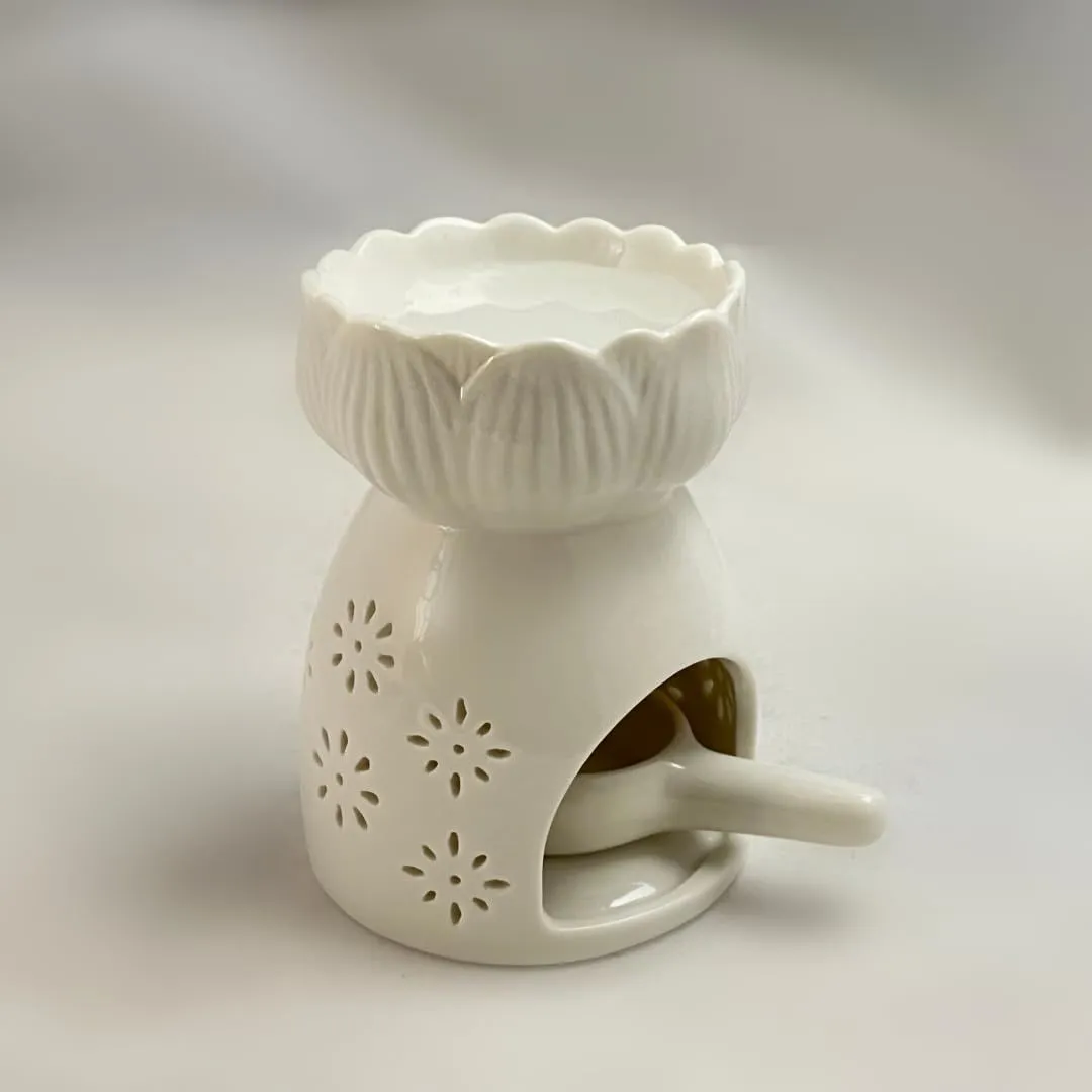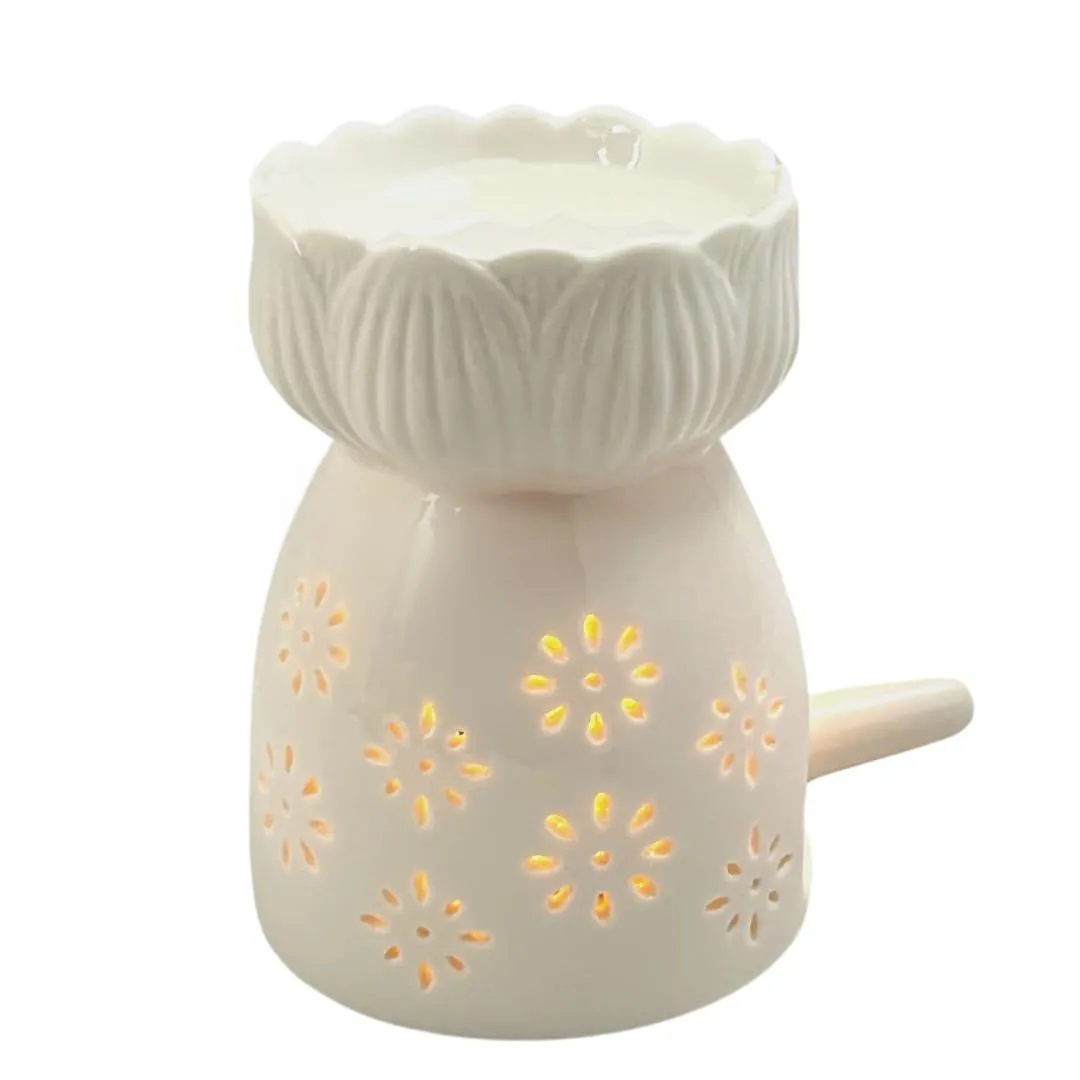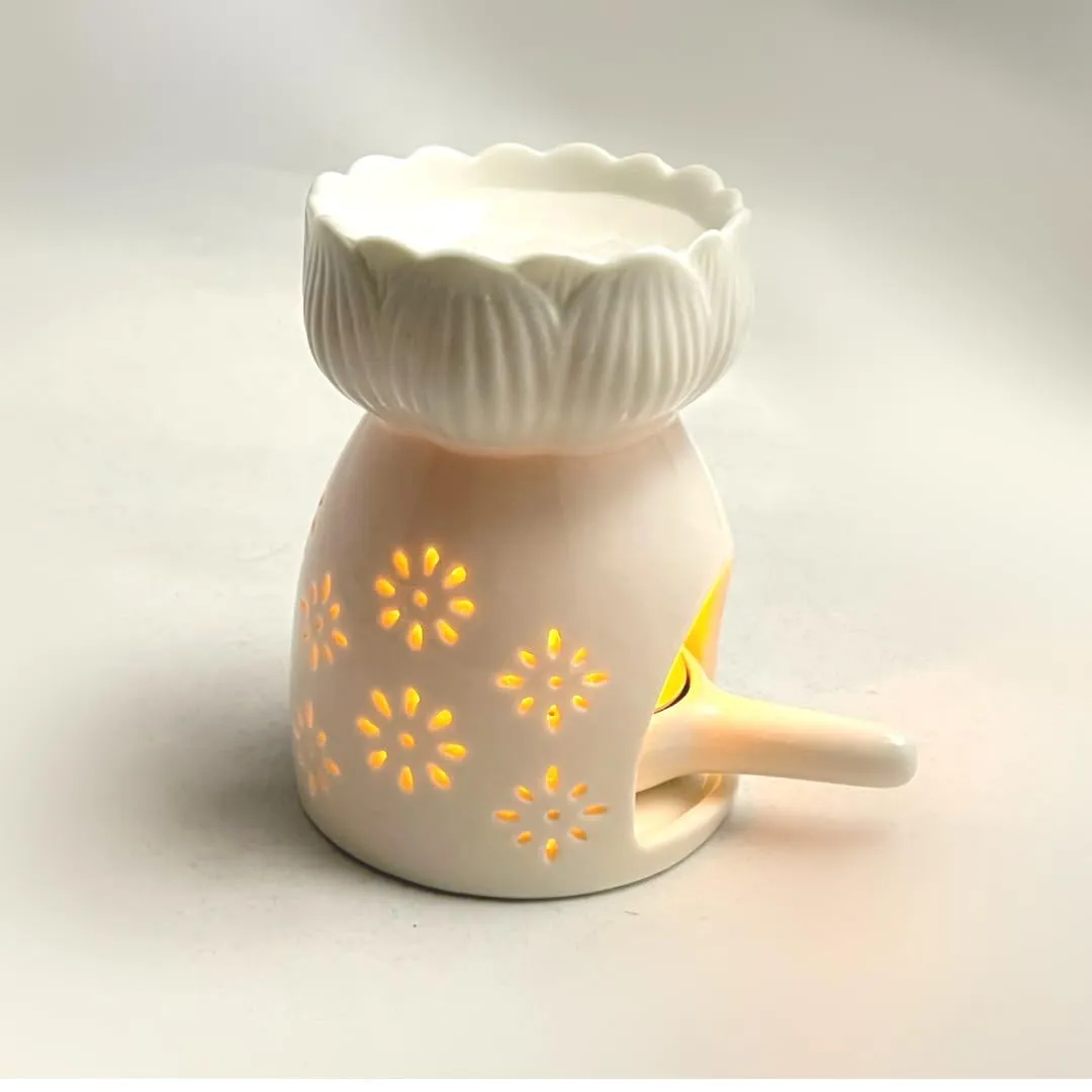 【即日発送】(Flower3) キャンドル式 正規品 (高さ10.5cm) 白 キャンドルホルダー付きセット アロマポット 陶器製 [Capitana]