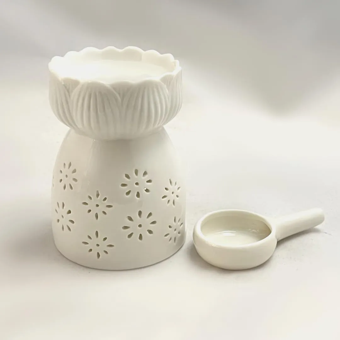 可愛い花柄のスリットの入った陶器の香炉です。陶器の香炉から放たれる光と香りの調和をお楽しみください。