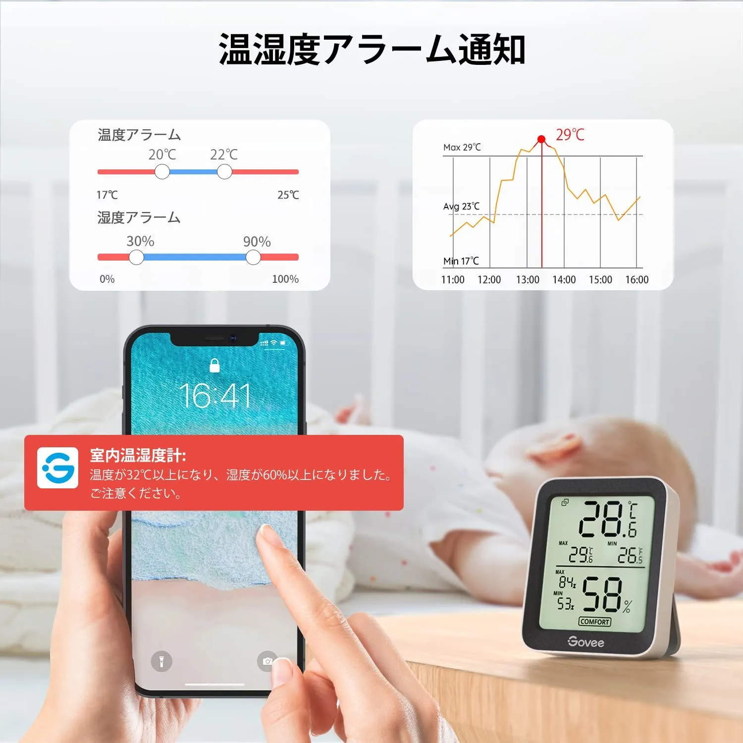 【Bluetooth接続・遠隔確認】Govee Bluetooth温湿度計は「Govee Home」アプリで温湿度を最大 80m遠隔確認できます。温湿度計に近づく必要はなく、気軽に温湿度情報がスマホで読取れます。また、インフルエンザや乾燥、梅雨時期のカビ予防にもお役に立ちます。