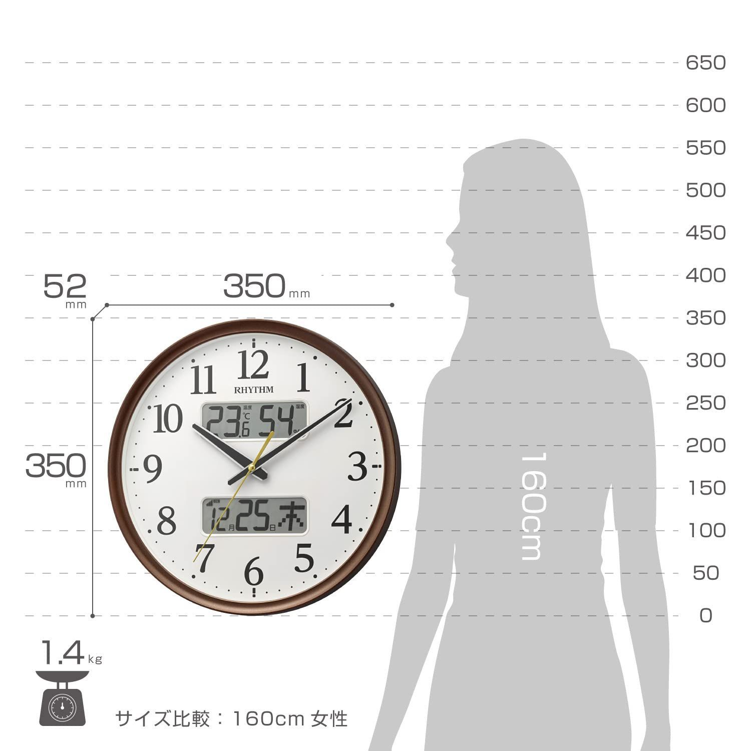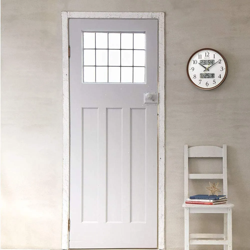 【数量限定】連続秒針 温度 湿度 アナログ カレンダー 電波時計 茶 掛け時計 Φ35x5.3cm リズム(RHYTHM) 8FYA03SR06