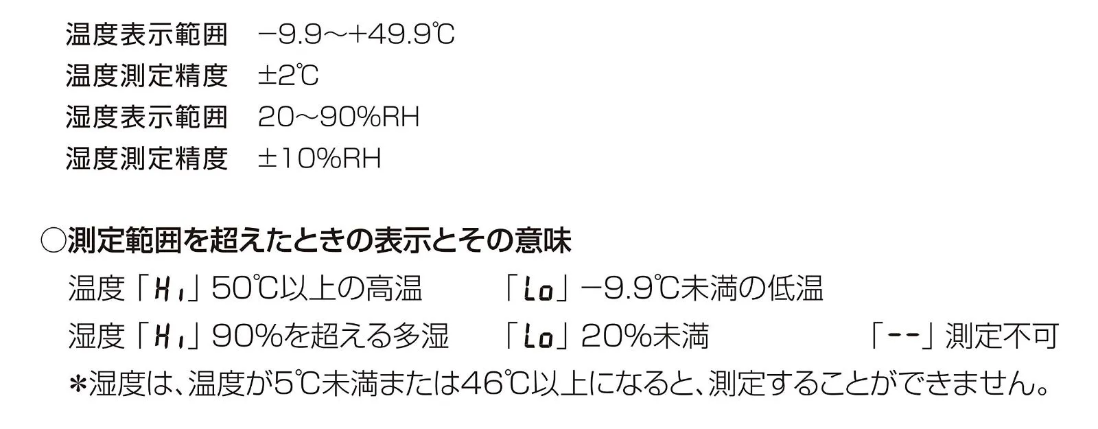 温度表示:-9.9~49.9℃