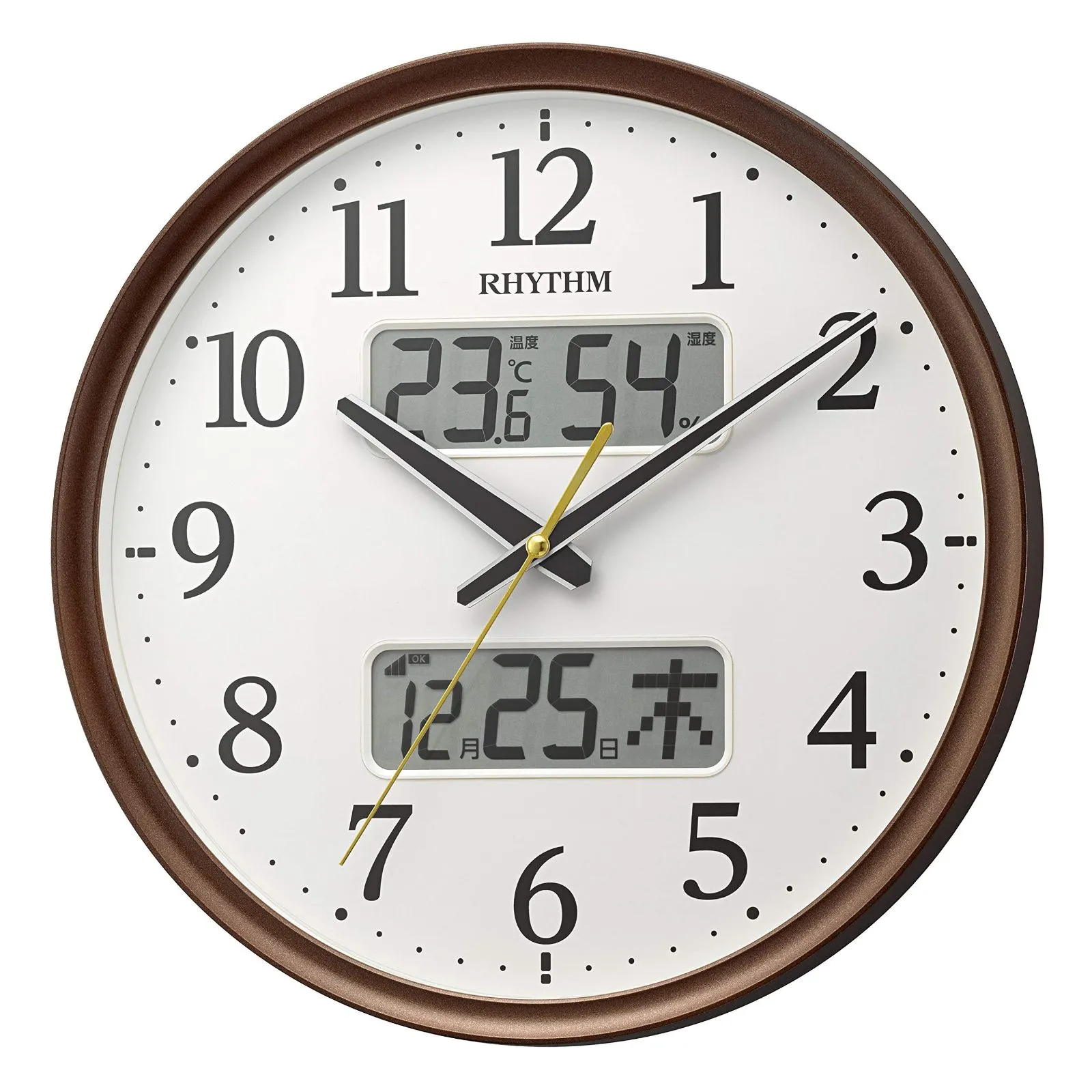 リズム(RHYTHM) 掛け時計 電波時計 アナログ 連続秒針 温度 湿度 カレンダー 茶 Φ35x5.3cm 8FYA03SR06