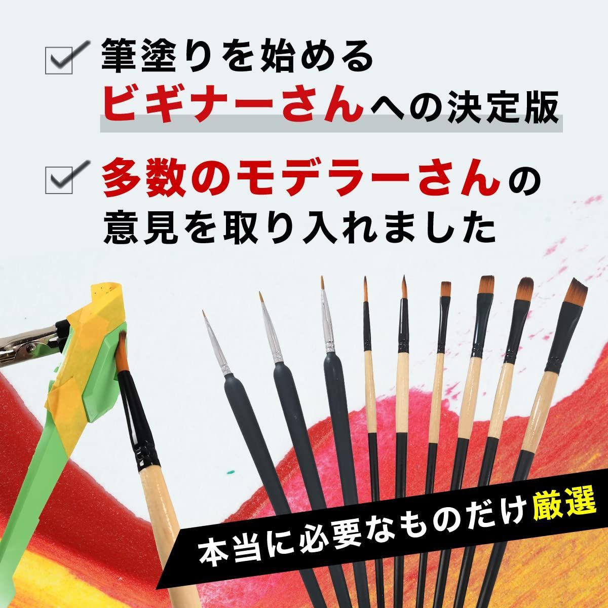 ?筆塗りを始めるにあたって「本当に必要なものは何か」を沢山のモデラ―さんにヒアリングし、結果、厳選されたこのセットに辿り着きました。 多くのエキスパートの声が詰まったセット内容です。 このセットと塗料と溶剤さえあれば、安心してプラモデル塗装にチャレンジできます。