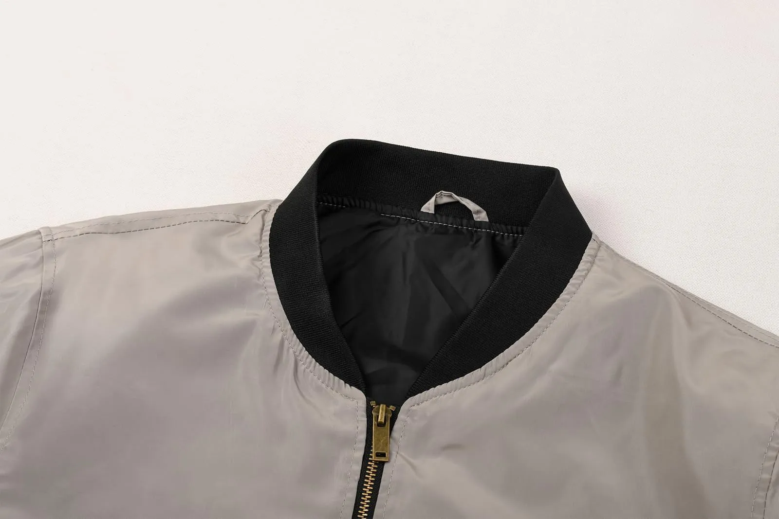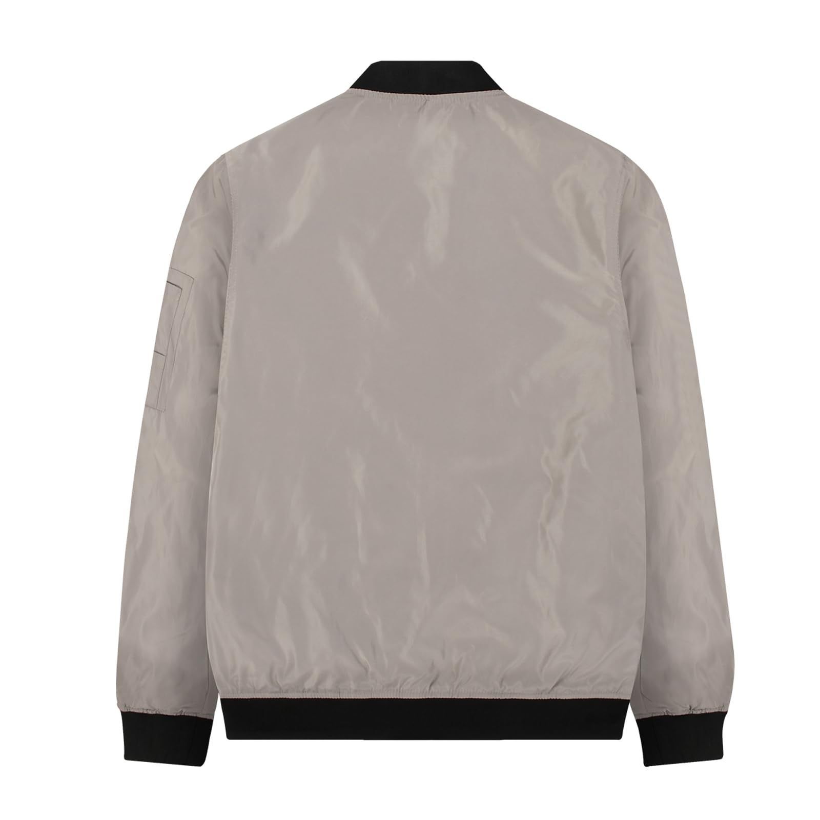 無地柄なMA-1ジャケットでパーカーやシャツと合わせるカジュアルスタイルに活躍してくれて、スッキリとした印象に仕上がったメンズジャケットです。