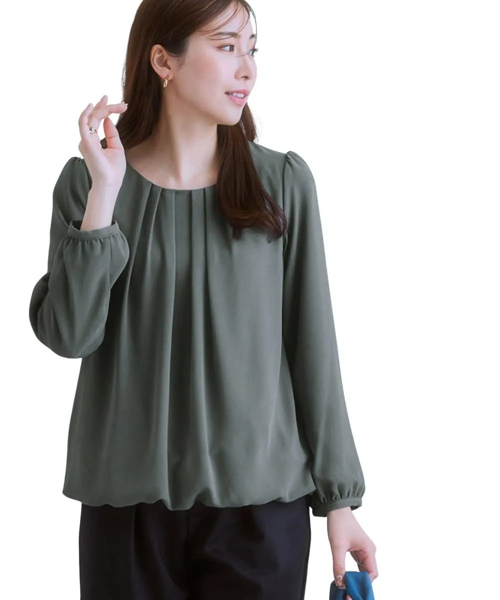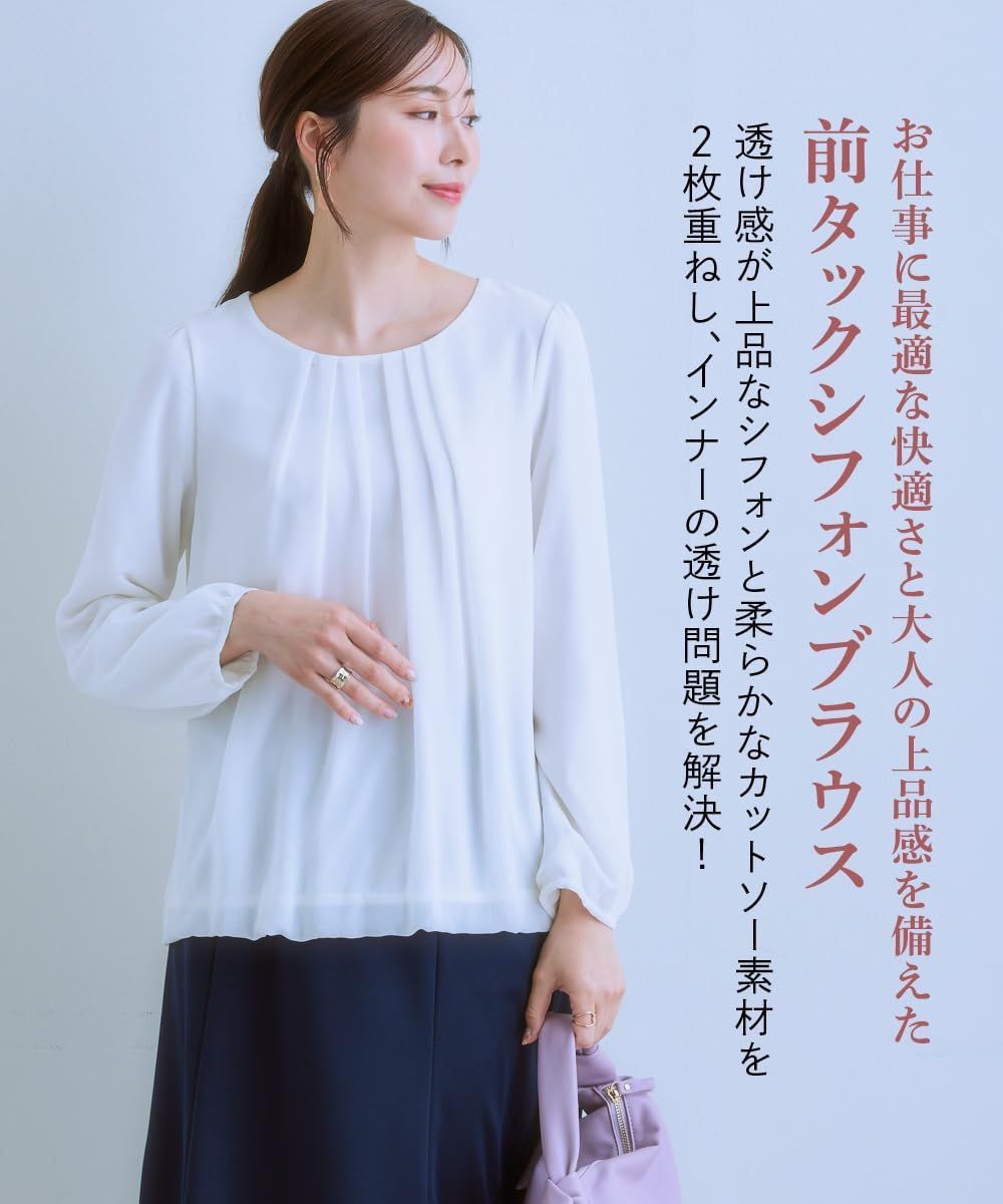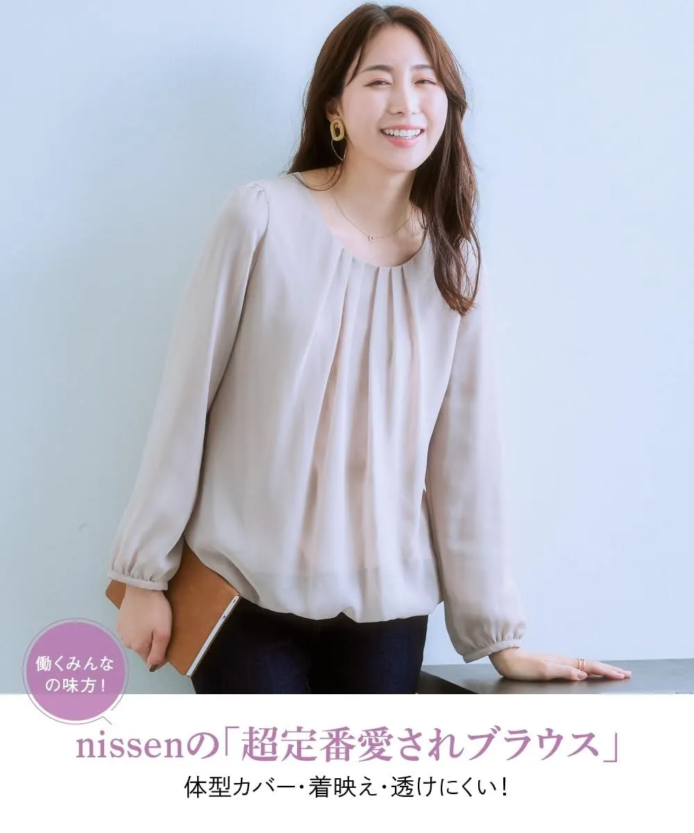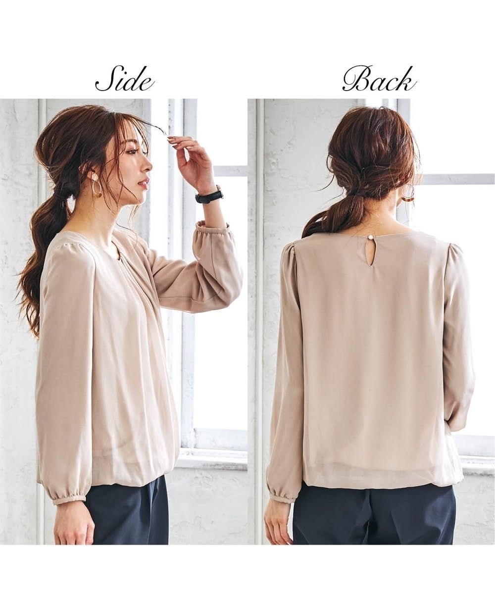 [ニッセン] ブラウス 長袖 シフォン タック カットソー裏地付 レディース オフィス ビジネス 通勤 洗える 春 秋