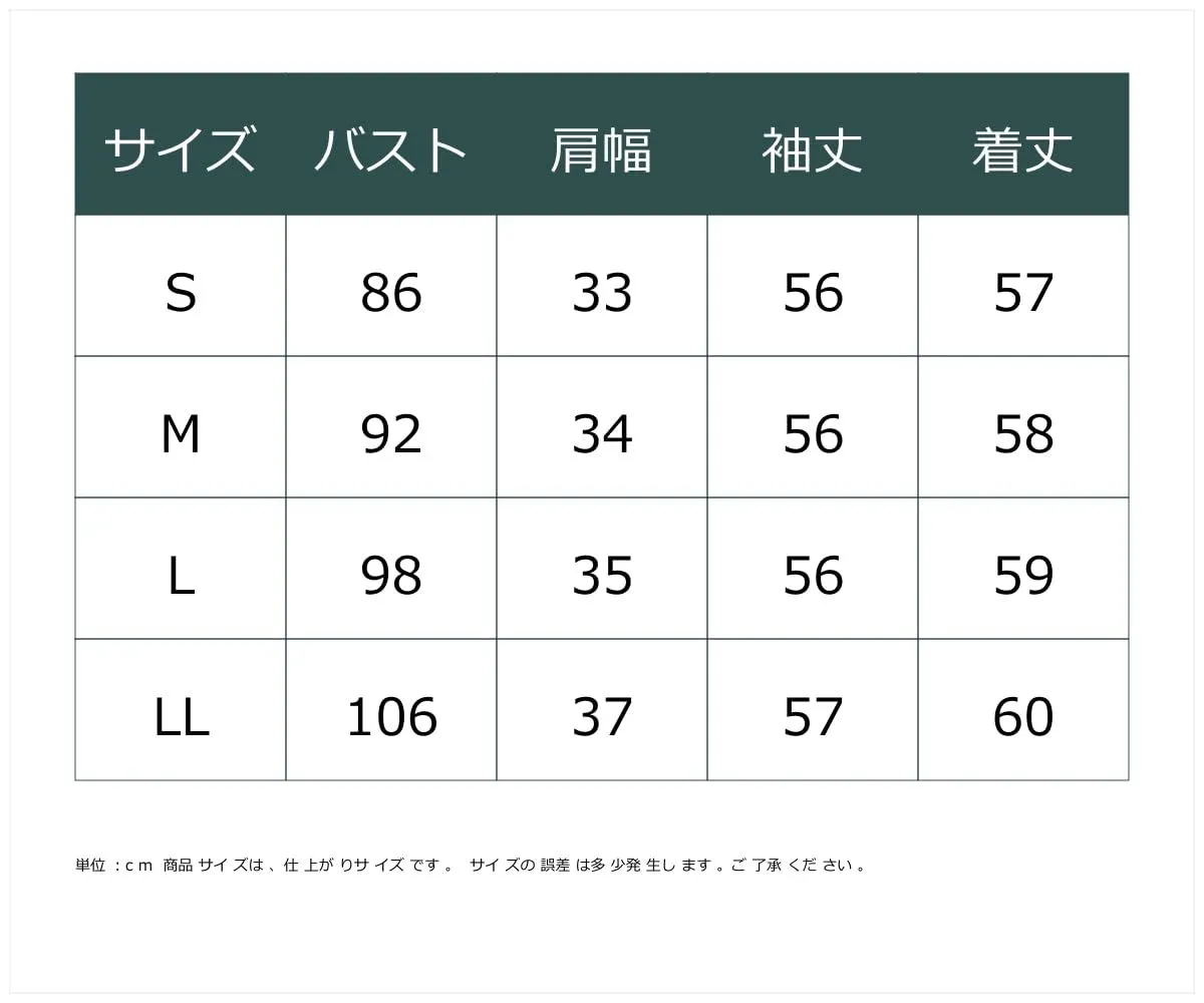【M】: バスト:92、肩幅:34、袖丈:56、着丈:58