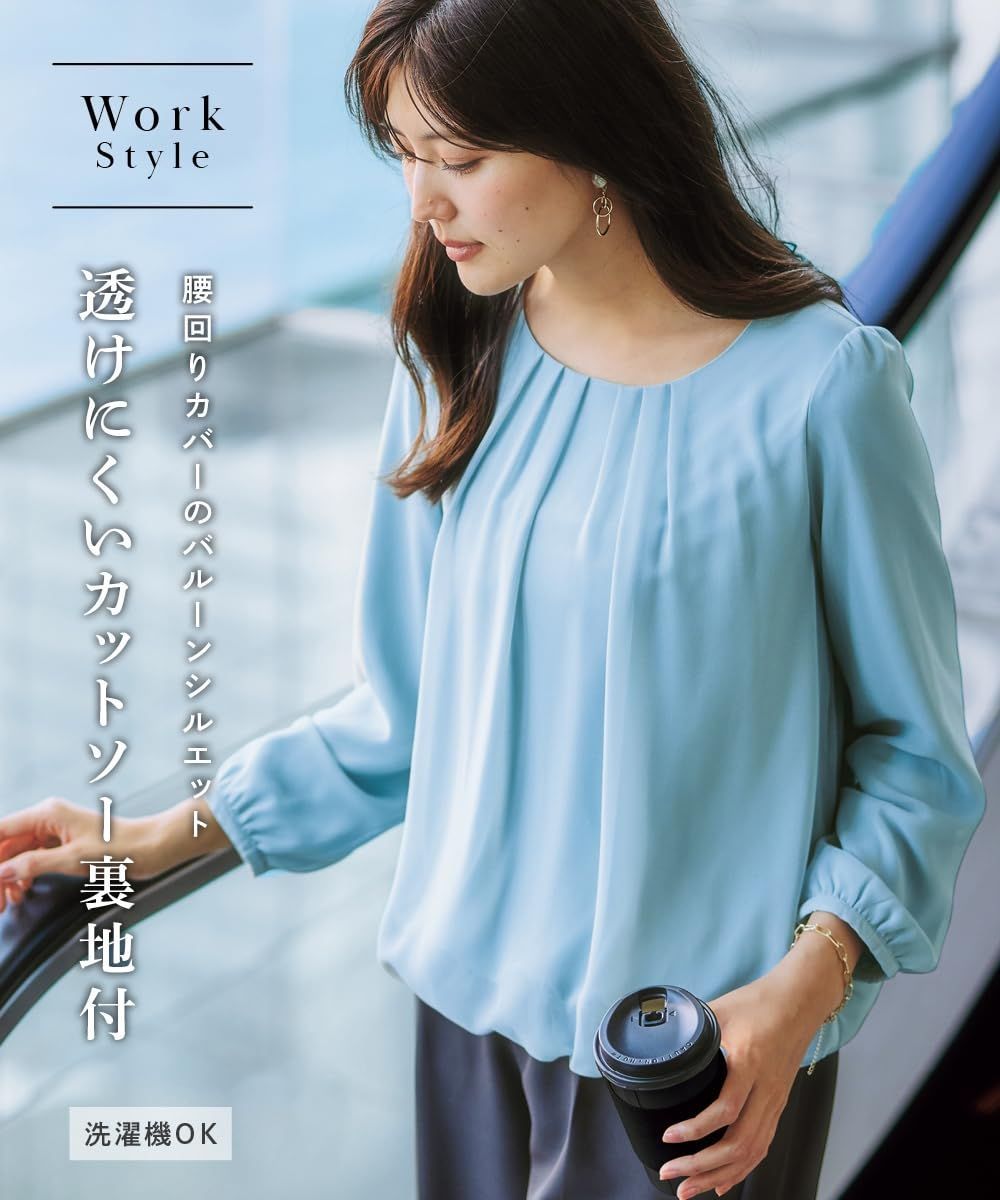 オフィス レディース カットソー裏地付 ビジネス タック 通勤 シフォン 洗える 長袖 春 ブラウス 秋 [ニッセン]