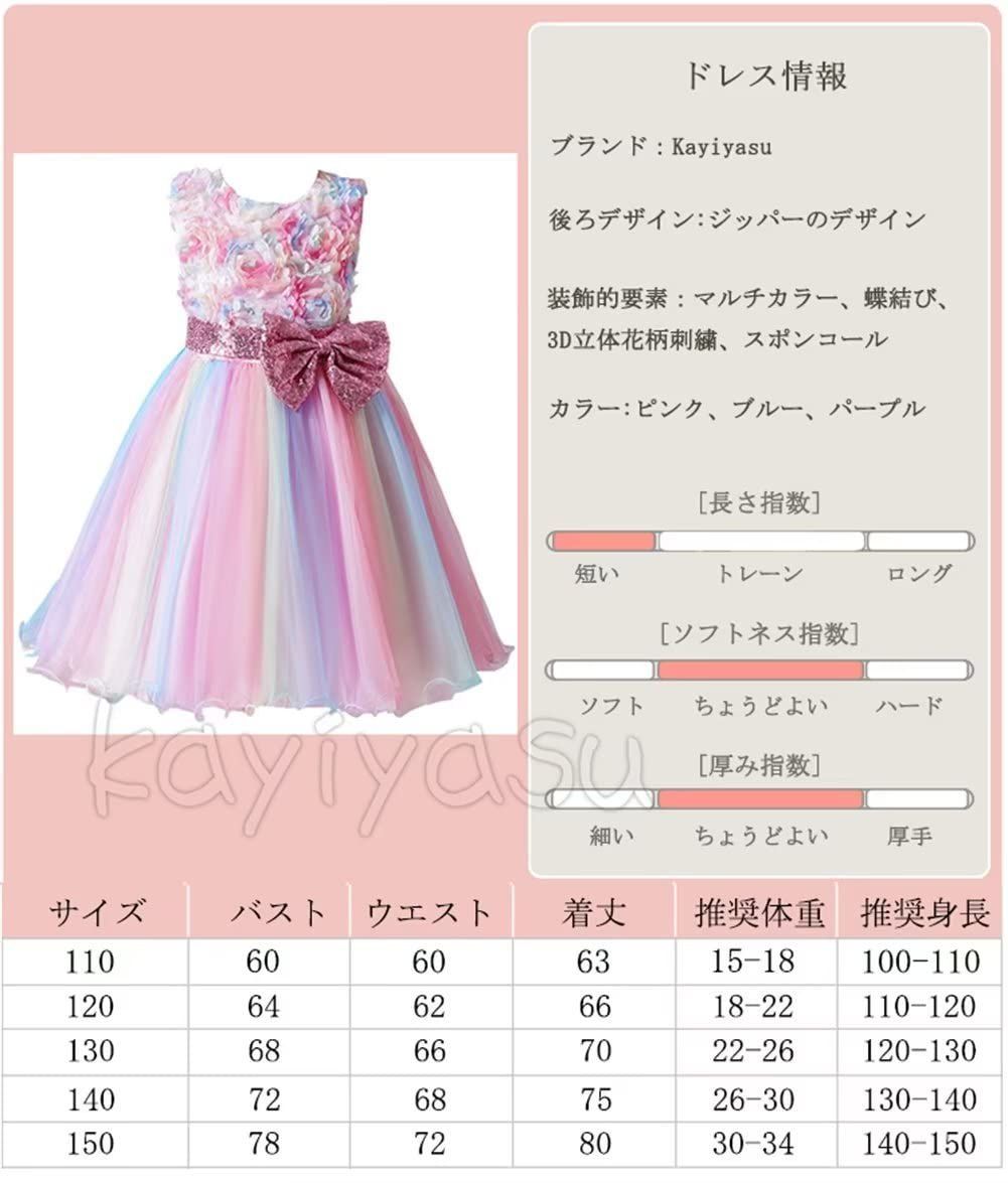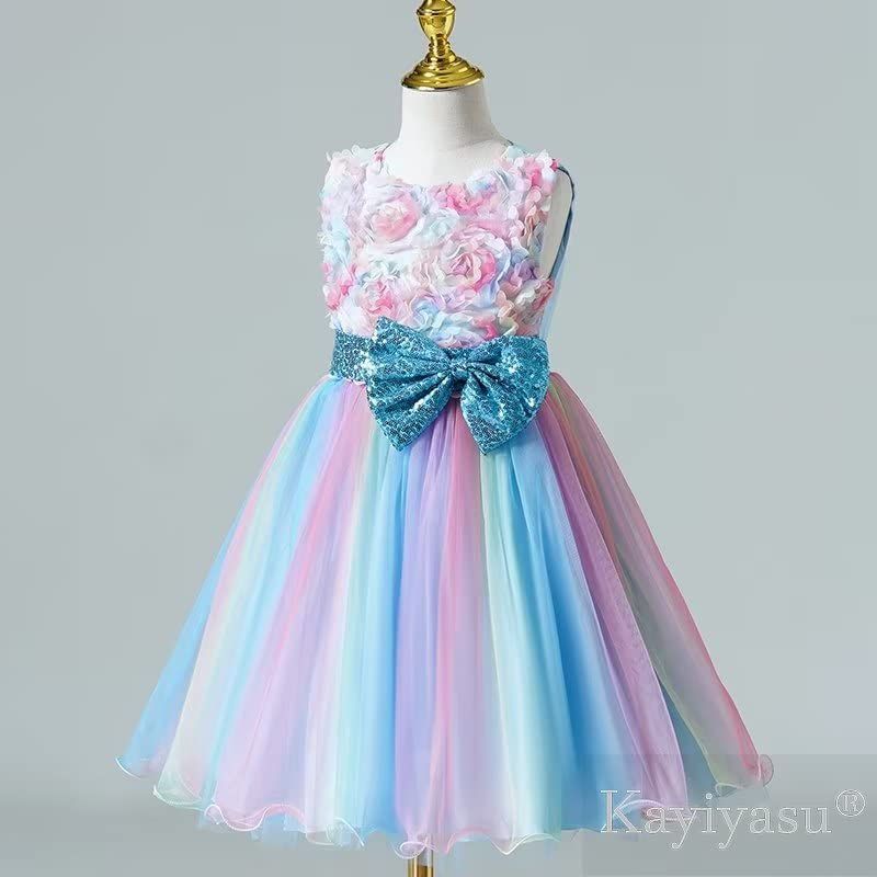 [Kayiyasu] ドレス 子供 ピアノ 発表会 入園式 女の子 虹色 スパンコール蝶結び 花柄 丸ネック フォーマル 卒業式 ガールズ 誕生日 3-13歳