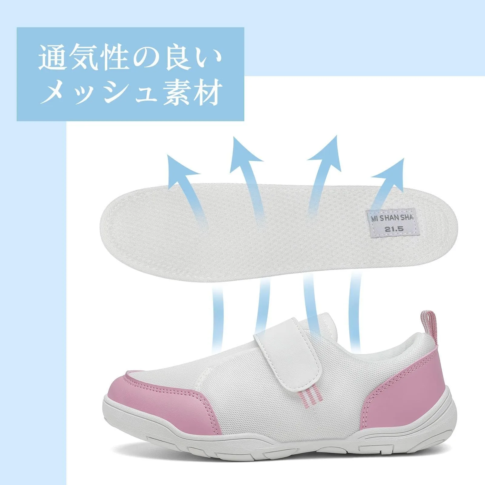 メッシュ 通気 子供靴 キッズシューズ 16.0-22.0cm うわばき うわぐつ マジックテープ 女の子 男の子 上靴 キッズ 子供 上履き [Mishansha]