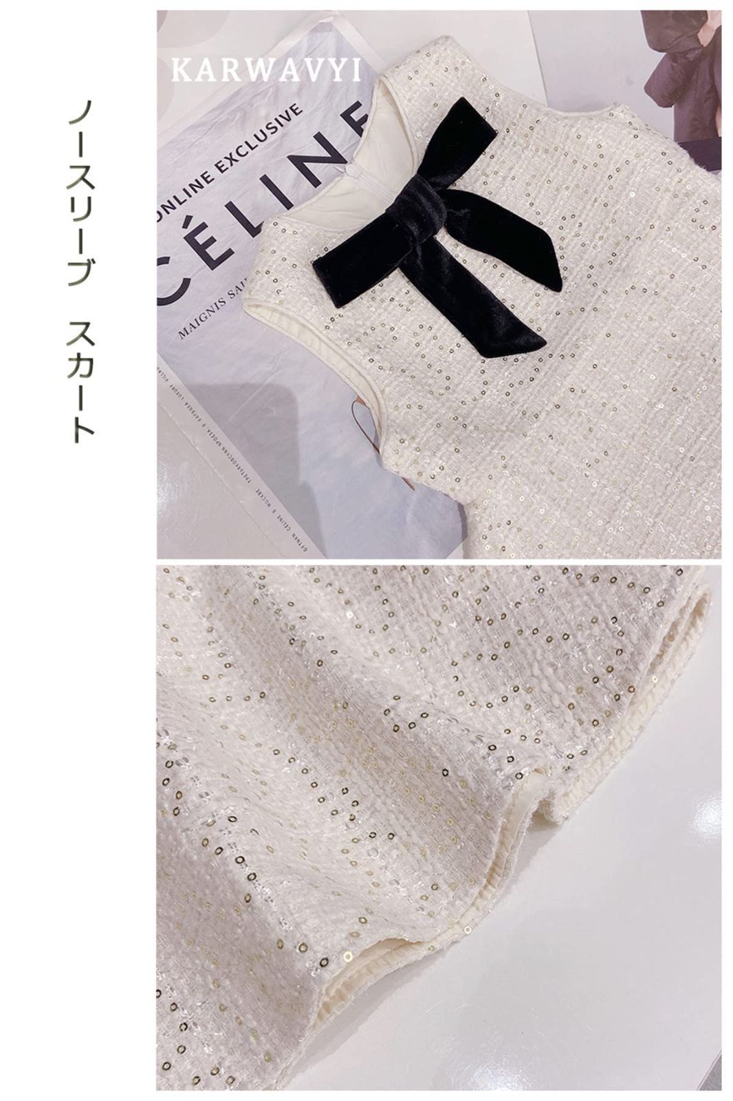 胸元のリボンは付け外し自在のクリップ式!ヘアアクセサリーとしてもご使用いただけます。