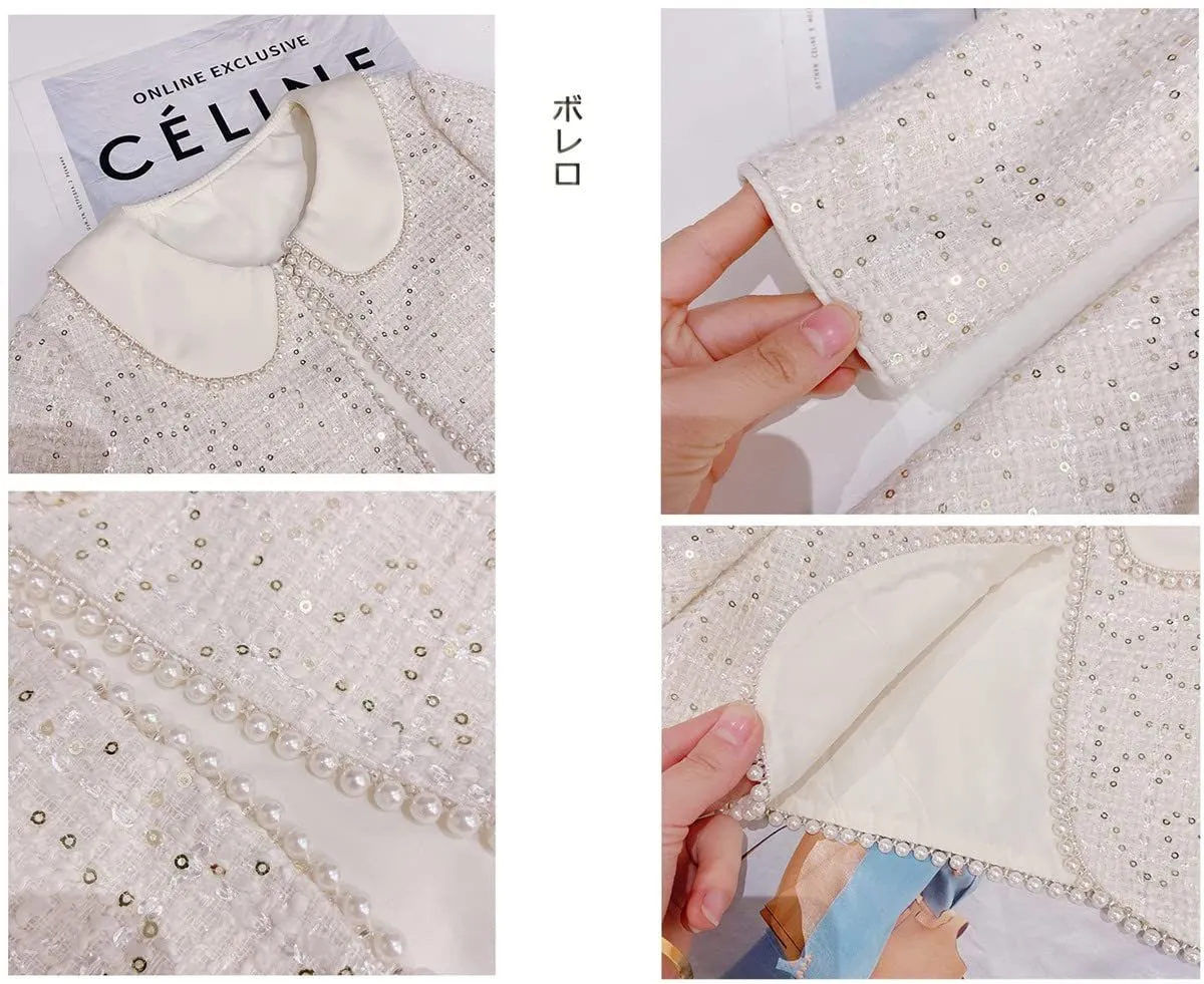 ボレロは襟元にはパール並んでいます。華やかな高級感があります。