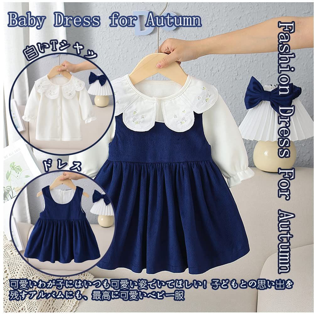 [Reegoo Peter] ベビー服 ドレス 女の子 ワンピース サロペット シャツ 綿100% セーラー風 セット かわいい 発表会 子供服 外出服 キッズ 73 90 100 110 120