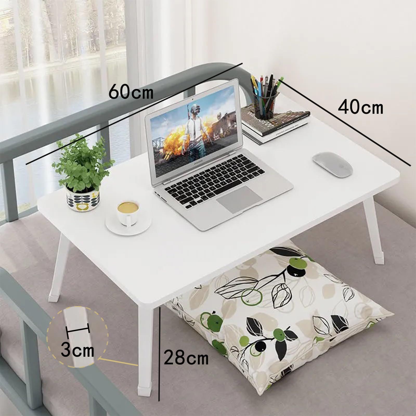【製品仕様】ミニテーブル 折り畳み製品寸法:長さ60×幅40cm×高さ28cm。折りたたんだ時の厚さ:4.5cm。重量: 2.7KG。テーブル 折畳み 耐荷重:20KG。テーブル脚の幅:3cm。★注意:折りたたむ場合は、手動でロックを解除してから折りたたむ必要があります。テーブル脚のロック部が変形する恐れがありますので、テーブル脚を直接無理に折らないでください。