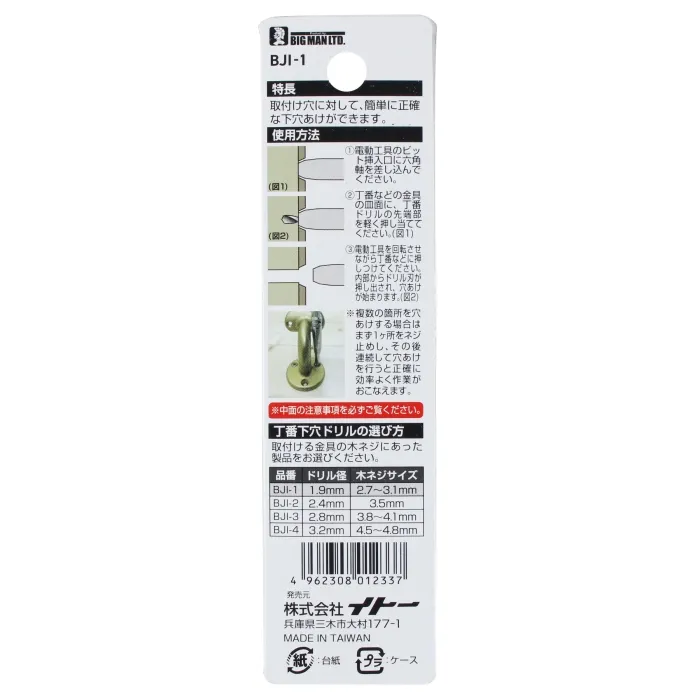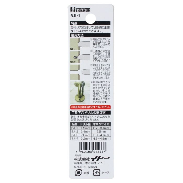【新品・4営業日で発送】イトー BIGMAN 丁番下穴ドリル 1.9mm BJI-1