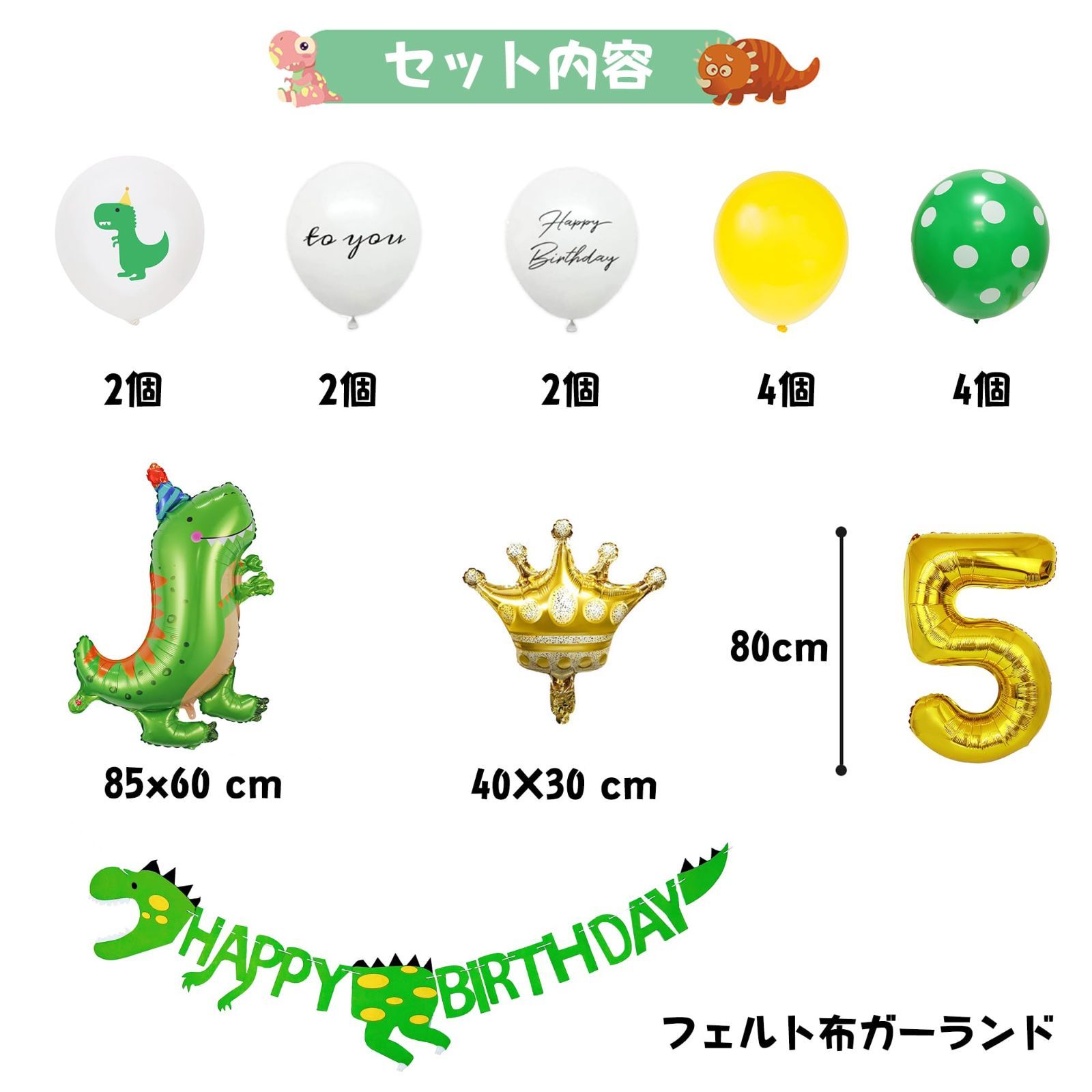 【セット内容】①フェルト布ガーランド×1 ②ホイルバルーン×3 ③ゴム風船×14 ④ 両面テープ [ゴム風船専用]
