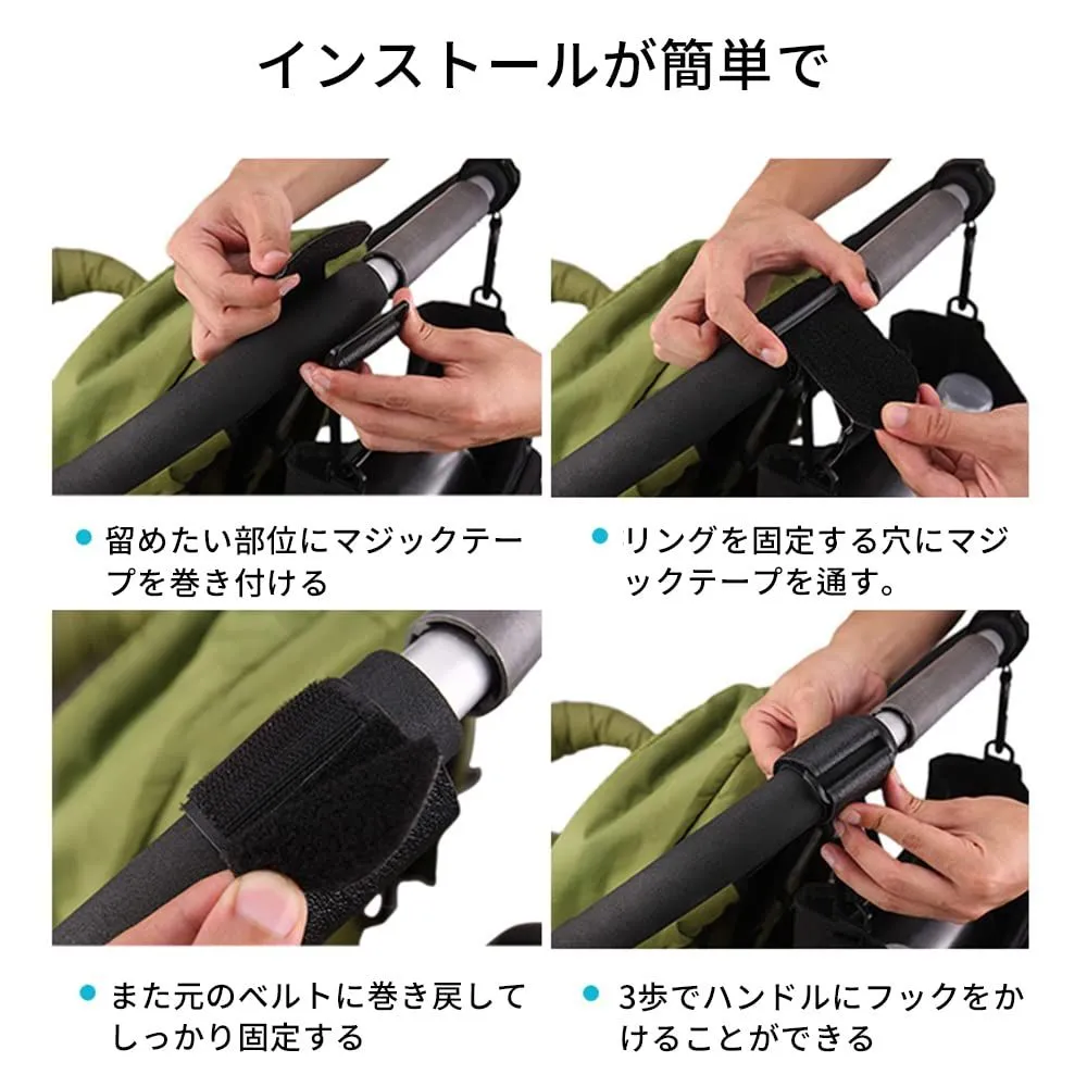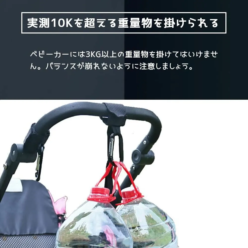 DFsucces ベビーカー フック 荷物フック 耐荷重30kg 装着簡単 滑り止め機能 カラビナ マルチフック マルチフック 360 度回転 マジックテープ 2個セット