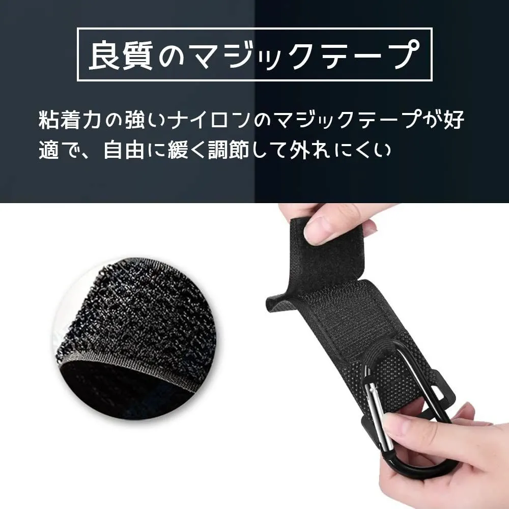 【マジックテープで簡単取り付け】ベビーカー フックのベルトが高品質のマジックテープを採用しており、柔らかな肌触りで、マジックテープ独特の硬さは減少されています。