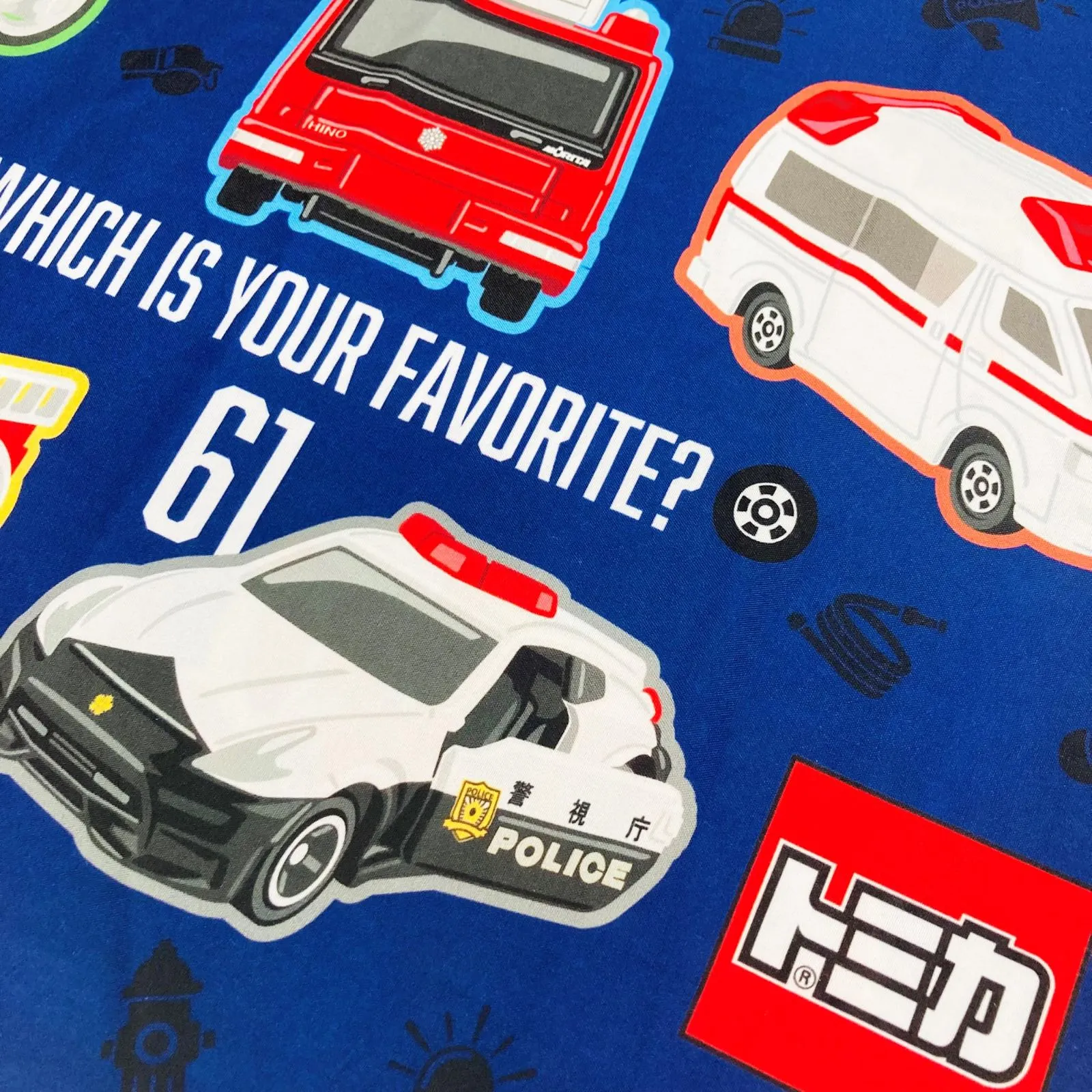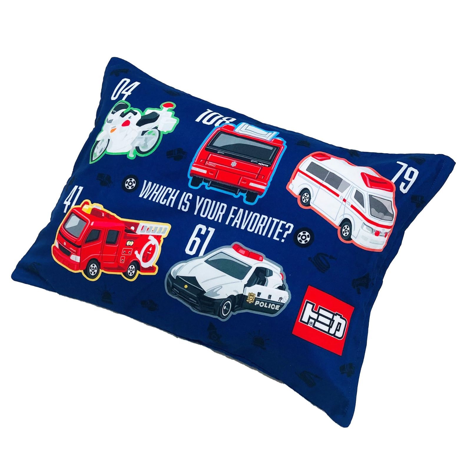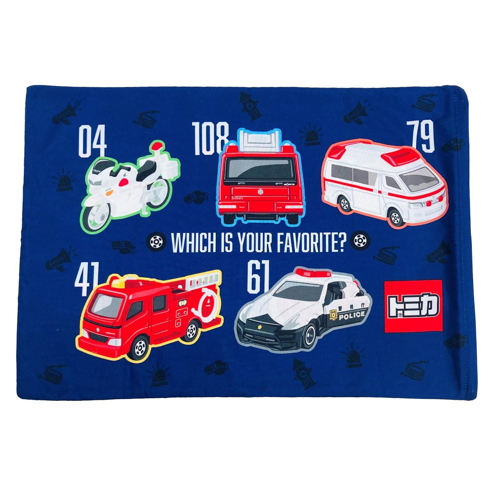 MORIPiLO トミカ 枕カバー (tomica 緊急車両 柔らかピーチスキン) ジュニアサイズ 子供用 ブルー 35x50cm グッズ ぬいぐるみ カバー ファスナー式 洗える 小さめ 可愛い パトカー 消防車 救急車 キャラクター まくらのモリシタ