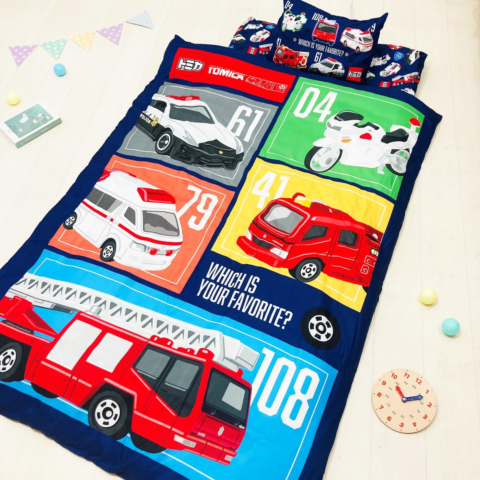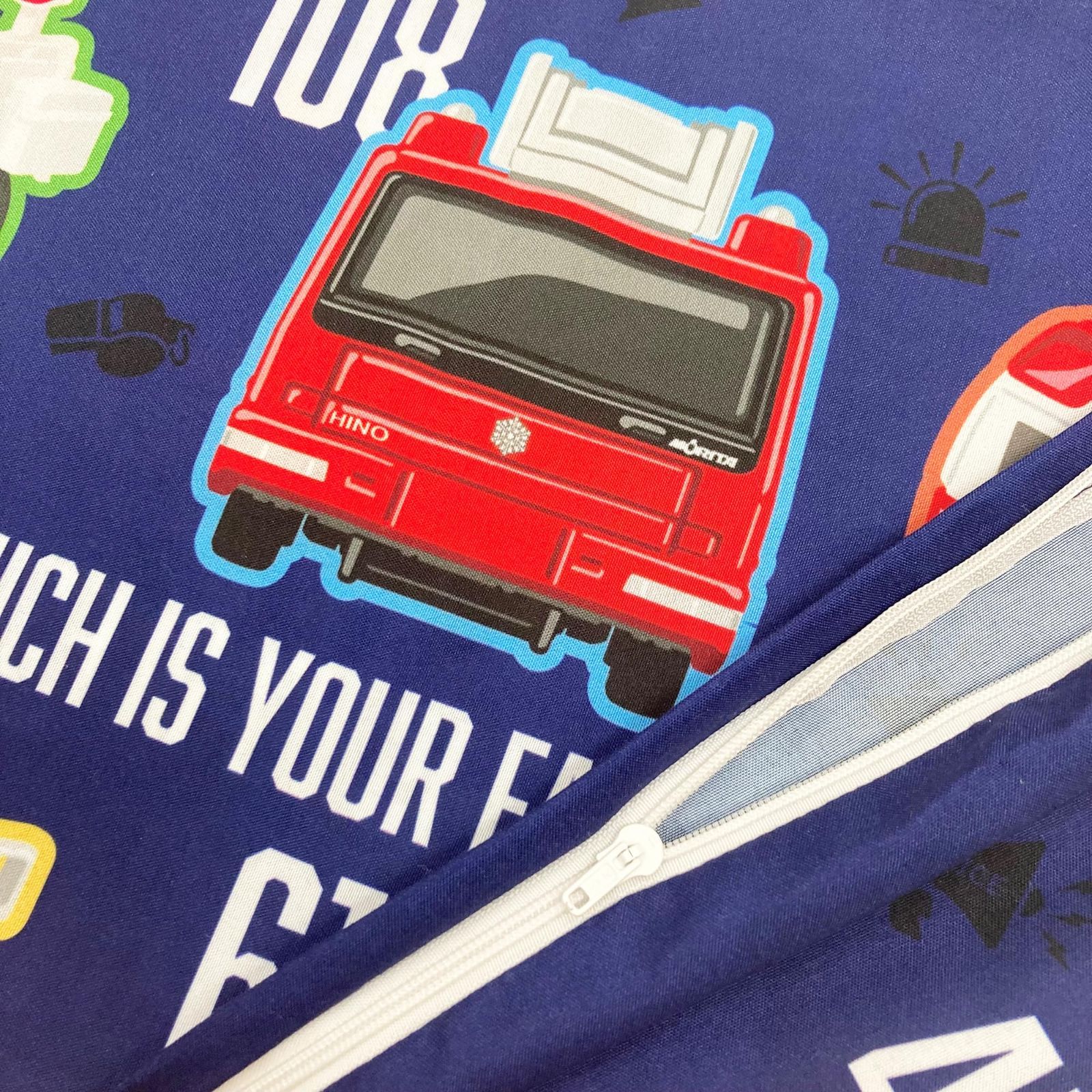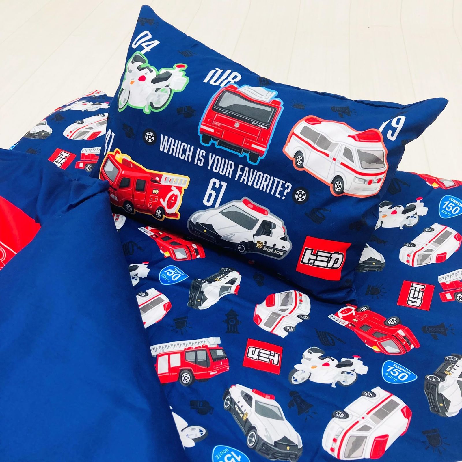 MORIPiLO トミカ 枕カバー (tomica 緊急車両 柔らかピーチスキン) ジュニアサイズ 子供用 ブルー 35x50cm グッズ ぬいぐるみ カバー ファスナー式 洗える 小さめ 可愛い パトカー 消防車 救急車 キャラクター まくらのモリシタ