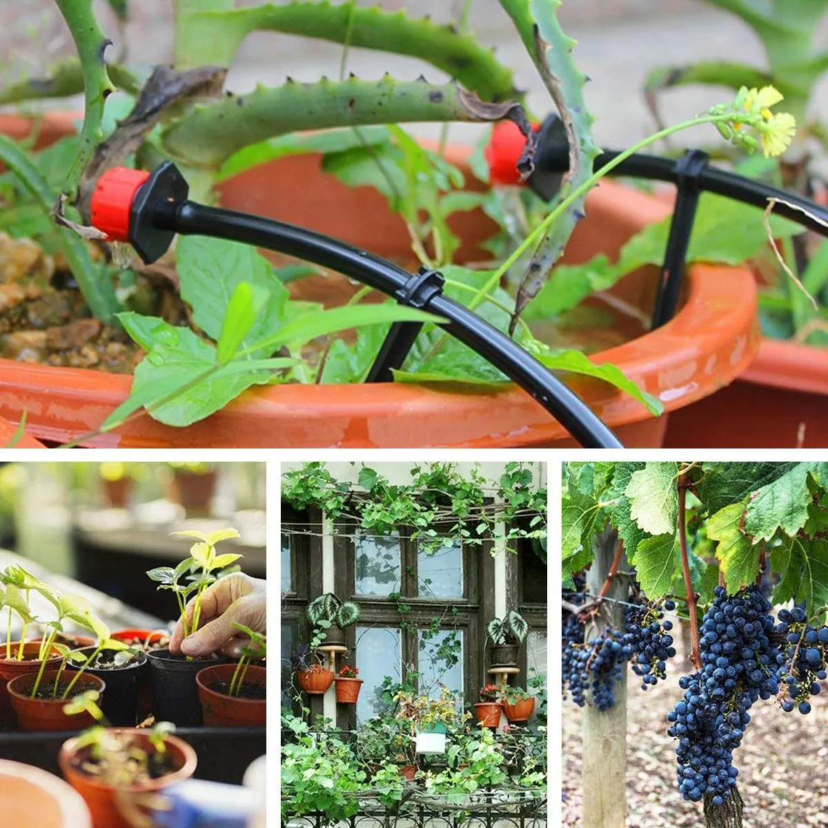 【自動散水ホースのメリット】この灌漑ホースシステムはホース、ノズル、ドリップ、ティージョイントなどがあって、伝統的な散水ノズルより、このシステムは直接に植物の根まで水やりでき、水量も調節でき、植物は水をよりやすく吸収し、最大70%の水が節約できます。