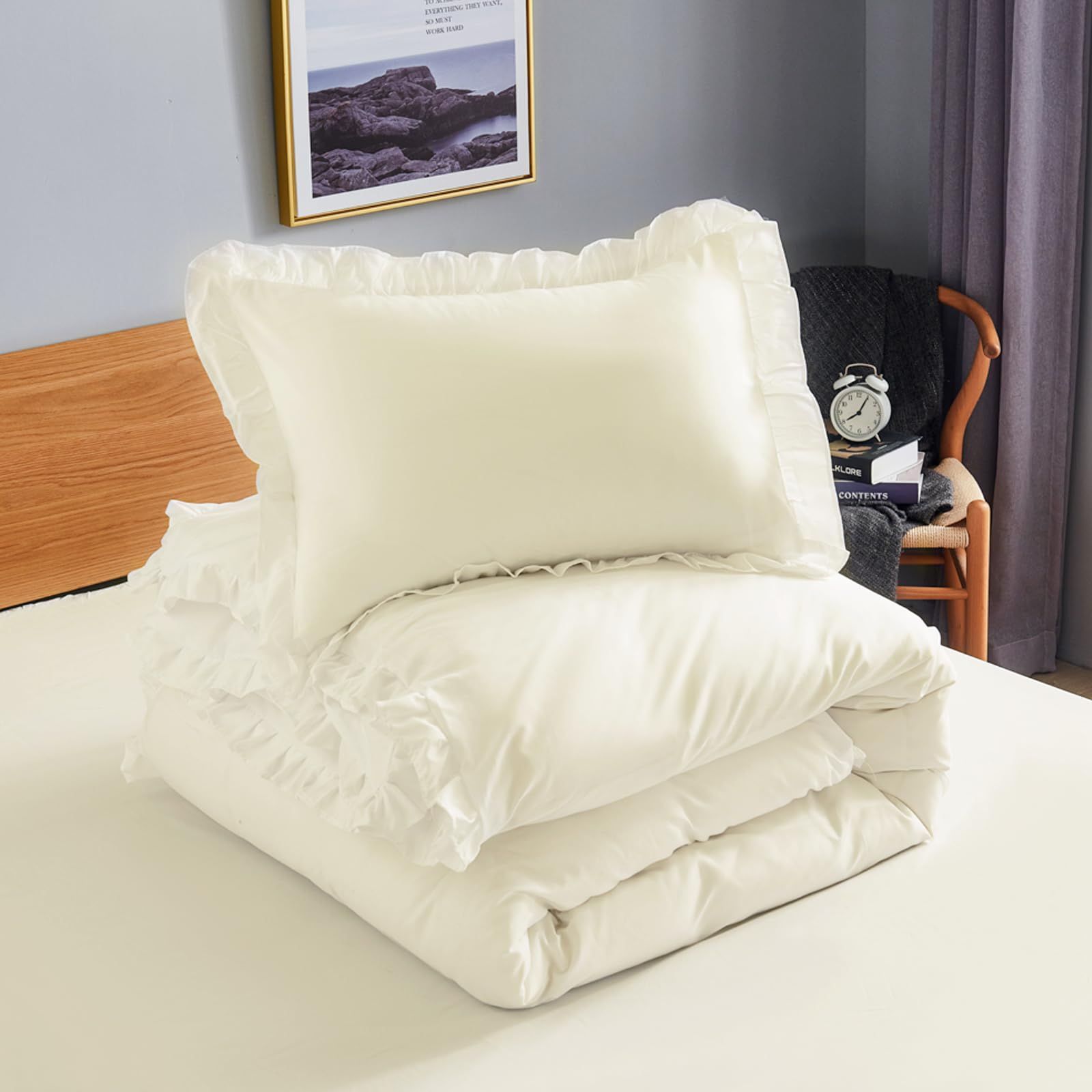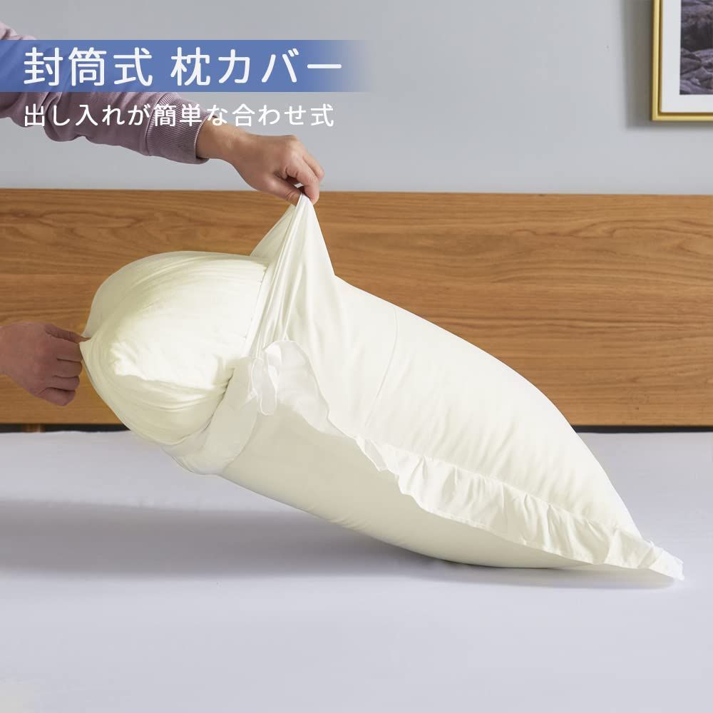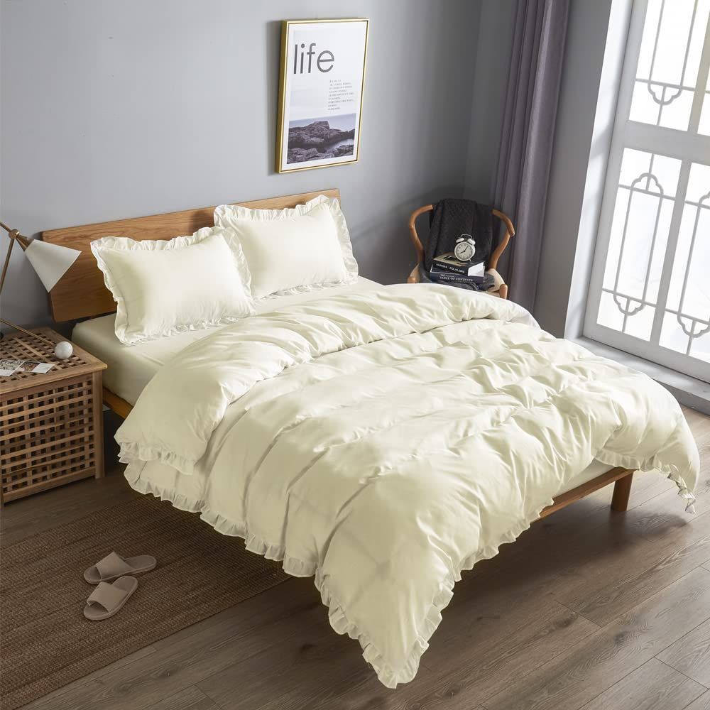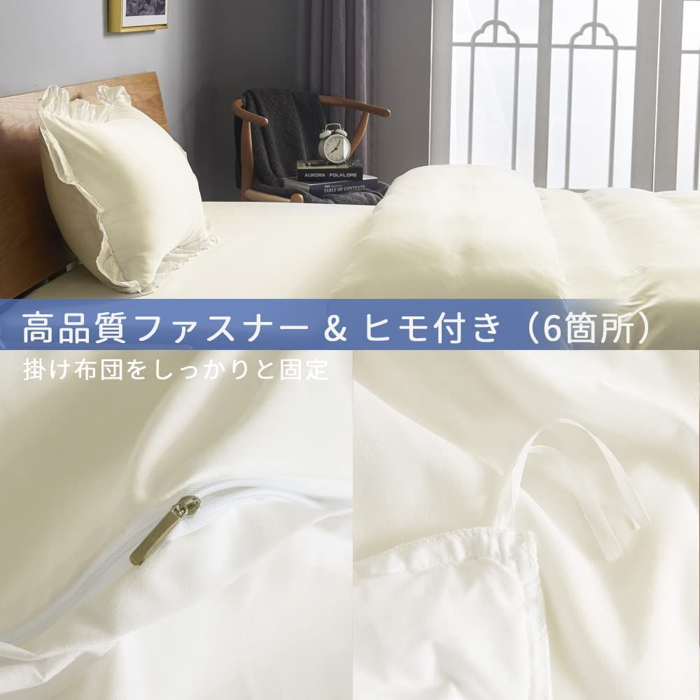 HOdo Home 布団カバー シングル 3点セット 掛け布団カバー ベッドカバー 枕カバー ベッドシーツ ボックスシーツ 洋式・和式兼用 寝具カバーセット フリル付き ピーチスキン加工 洗い替え 速乾(アイボリー)