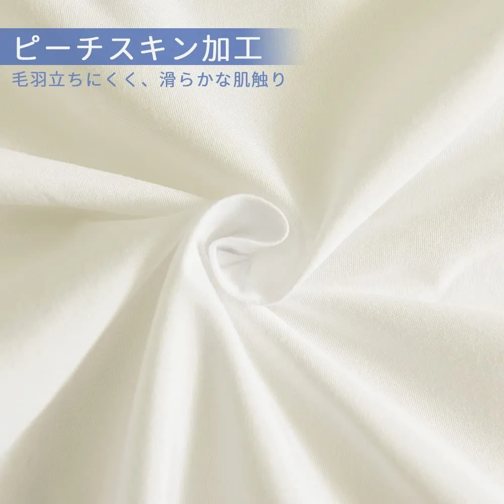 【仕様】:掛け布団カバー・150X210cm、枕カバー・43X63cm、ボックスシーツ・100X200+30cm。商品パッケージ重量:約1.6kg。ポリエステル100%の生地を使用しています。シワや毛玉ができにくい寝具カバーセットです。きめ細やかなピーチスキン加工で柔らかくて肌に優しいから、敏感肌の方でも安心してご利用頂けます。