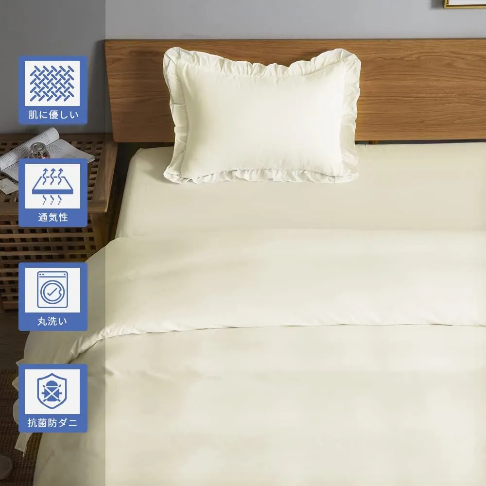 【数量限定】洋式・和式兼用 寝具カバーセット ボックスシーツ ベッドシーツ フリル付き 枕カバー ベッドカバー ピーチスキン加工 掛け布団カバー 3点セット 洗い替え シングル 布団カバー 速乾(アイボリー) Home HOdo