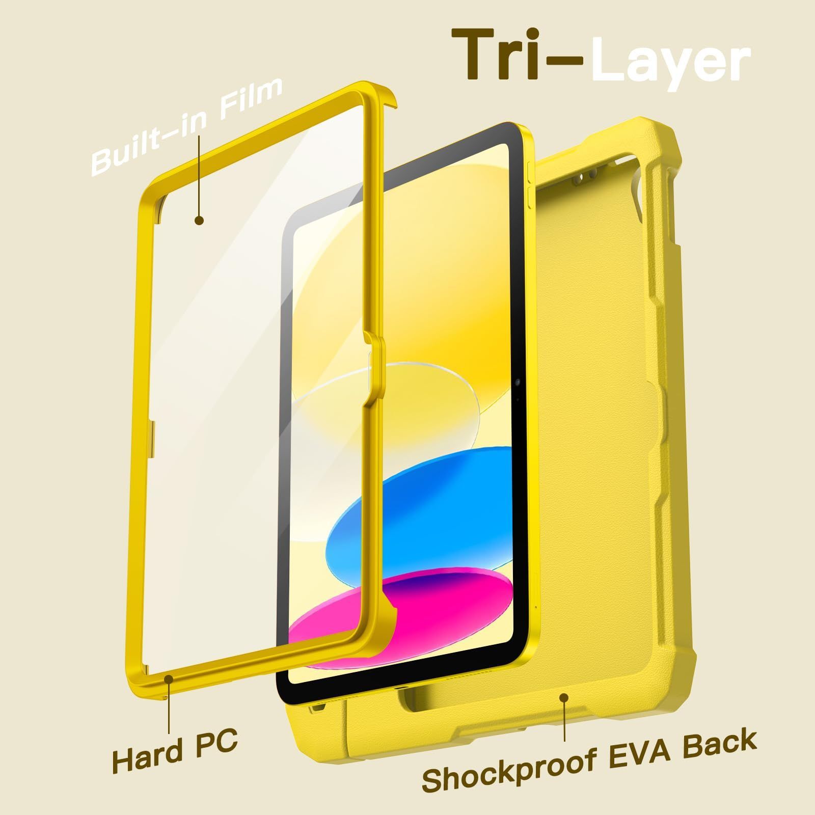 【新着商品】JETech 子供用 iPad(A16)ケース 第11/10世代(2025/2022モデル)用液晶保護フィルム付き 耐衝撃 フルボディハンドルスタンド タブレット保護カバー (イエロー)