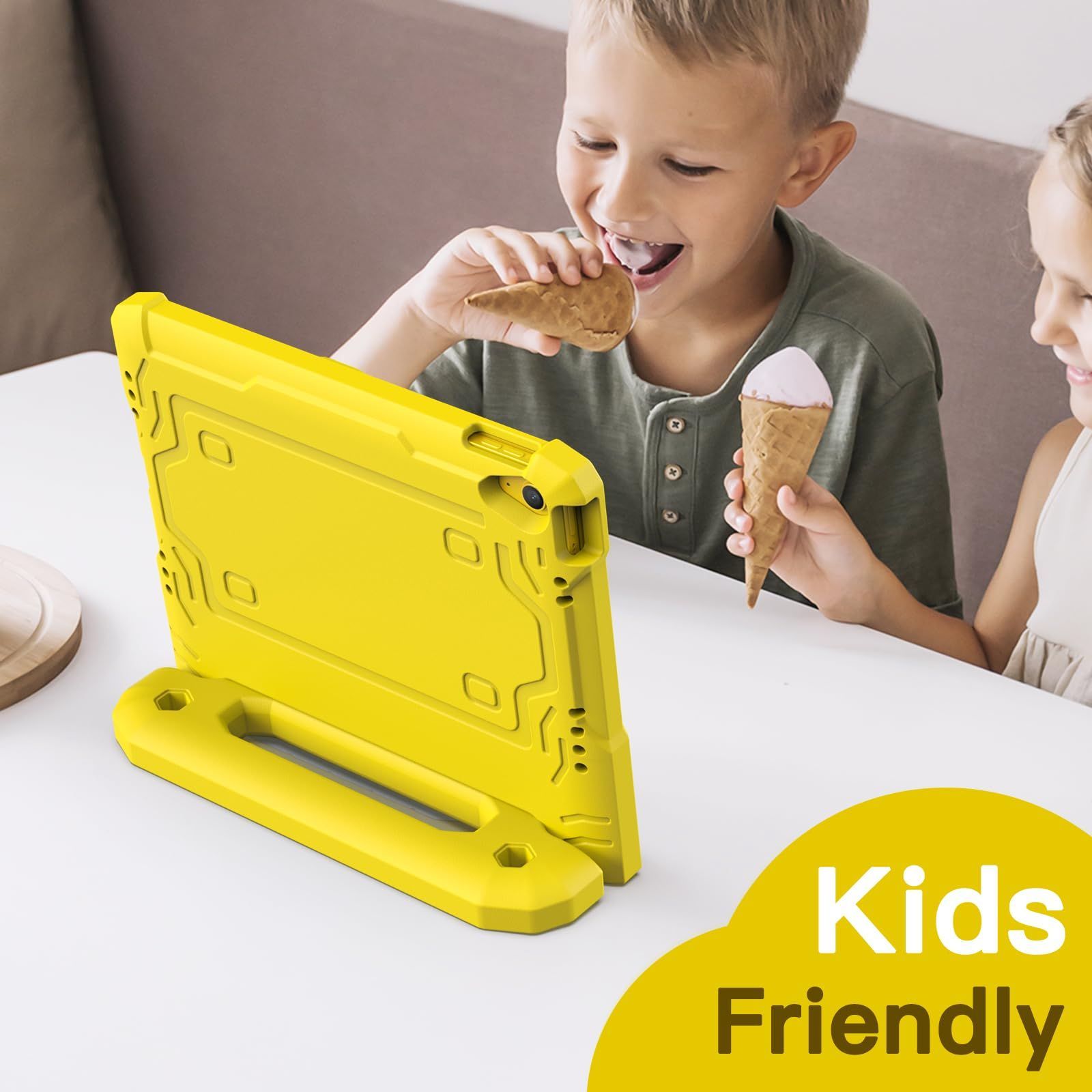 JETech 子供用 iPad(A16)ケース 第11/10世代(2025/2022モデル)用液晶保護フィルム付き 耐衝撃 フルボディハンドルスタンド タブレット保護カバー (イエロー)